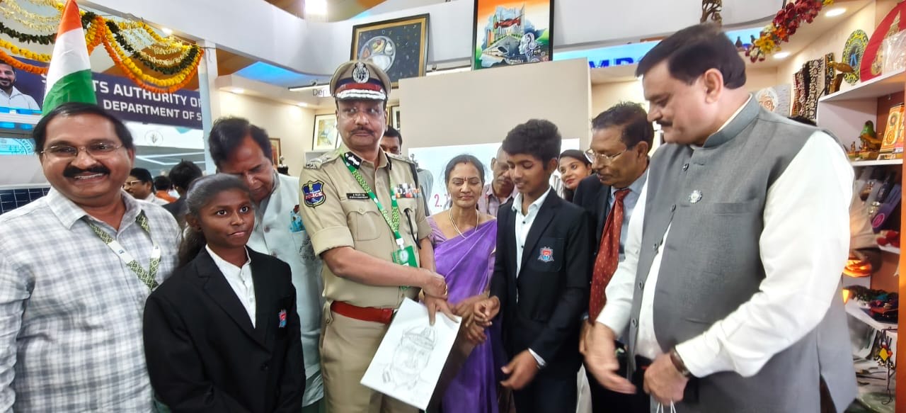 గ్లోబల్ సమ్మిట్ ప్రాంతంలో భద్రతా ఏర్పాట్లను మంగళవారం నాడు రాష్ట్ర డిజిపి బి. శివధర్ రెడ్డి పర్యవేక్షిస్తుండగా ఆసక్తికరమైన సంఘటన జరిగింది. భద్రతా ఏర్పాట్లను పరిశీలిస్తున్న క్రమంలో అక్కడ ఏర్పాటు చేసిన స్టాల్స్ను పర్యవేక్షిస్తున్నప్పుడు, ఓ గురుకుల పాఠశాల విద్యార్థి తన ప్రతిభను ప్రదర్శించి డిజిపి ప్రశంసలు పొందాడు.వివిధ ప్రాంతాల్లోని బందోబస్తు ఏర్పాట్లను పర్యవేక్షిస్తున్న డిజిపి స్టాల్స్ ఏర్పాటు చేసిన ప్రాంతంలోకి వొచ్చారు. ఈ సందర్భంగా, సాంఘిక సంక్షేమ గురుకుల పాఠశాలకు చెందిన విద్యార్థులు ఏర్పాటు చేసిన ఫైన్ ఆర్ట్స్ స్టాల్ ఆయన దృష్టిని ఆకర్షించింది. ఆ స్టాల్ వద్ద ఉన్న ఓ తొమ్మిదో తరగతి విద్యార్థి డిజిపి బి. శివధర్ రెడ్డిని చూసి వెంటనే స్పందించాడు. ఆ విద్యార్థి పేరు ఎ. భగవేందర్. డిజిపి మాట్లాడిన తర్వాత అతడు ఉత్సాహంగా ముందుకు వొచ్చి, “సార్, మీ చిత్రపటాన్ని ఇప్పుడే గీసి ఇస్తాను,” అని వినయంగా కోరాడు.బాలుడి ఉత్సాహాన్ని గమనించిన డిజిపి వెంటనే అంగీకరించారు.అనంతరం కొన్ని నిమిషాల పాటు భగవేందర్ ఎదురుగా డిజిపి కూర్చున్నారు. పోలీసు ఉన్నతాధికారి తన ముందు కూర్చుండగా, బాలుడు భగవేందర్ ఏ మాత్రం బెరుకు లేకుండా తన చిత్రకళా నైపుణ్యాన్ని ప్రదర్శించాడు. అత్యంత ఏకాగ్రతతో డిజిపి ముఖ కవళికలను, రూపాన్ని పరిశీలిస్తూ కేవలం నిమిషాల వ్యవధిలోనే ఆయన చిత్రపటాన్ని అద్భుతంగా గీసి పూర్తి చేశాడు. ఆ పోర్ట్రెయిట్లో డిజిపి శివధర్ రెడ్డి రూపం ఉన్నట్లుగా రూపుదిద్దుకోవడం అక్కడ ఉన్న వారందరినీ అబ్బురపరిచింది. నాగర్ కర్నూల్ జిల్లా, ఎతం గ్రామానికి చెందిన రాజు, అనితల కుమారుడైన ఎ. భగవేందర్, ప్రస్తుతం ఘట్కేసర్లో ఉన్న సాంఘిక సంక్షేమ గురుకుల ఫైన్ ఆర్ట్స్ పాఠశాలలో తొమ్మిదో తరగతి చదువుతున్నాడు. నిమిషాల్లో బాలుడు గీసిన తన చిత్రపటాన్ని పరిశీలించిన డీజీపీ బి. శివధర్ రెడ్డి, ఆ బాలుడి ప్రతిభకు సంతోషం వ్యక్తం చేశారు. తొమ్మిదో తరగతి చదువుతూ, ఇంతటి కళా నైపుణ్యాన్ని ప్రదర్శించడం పట్ల ఆయన భగవేందర్ను అభినందించారు. భవిష్యత్తులో మరిన్ని విజయాలను సాధించాలని ఆ బాలుడిని డిజిపి శివధర్ రెడ్డి దీవించారు