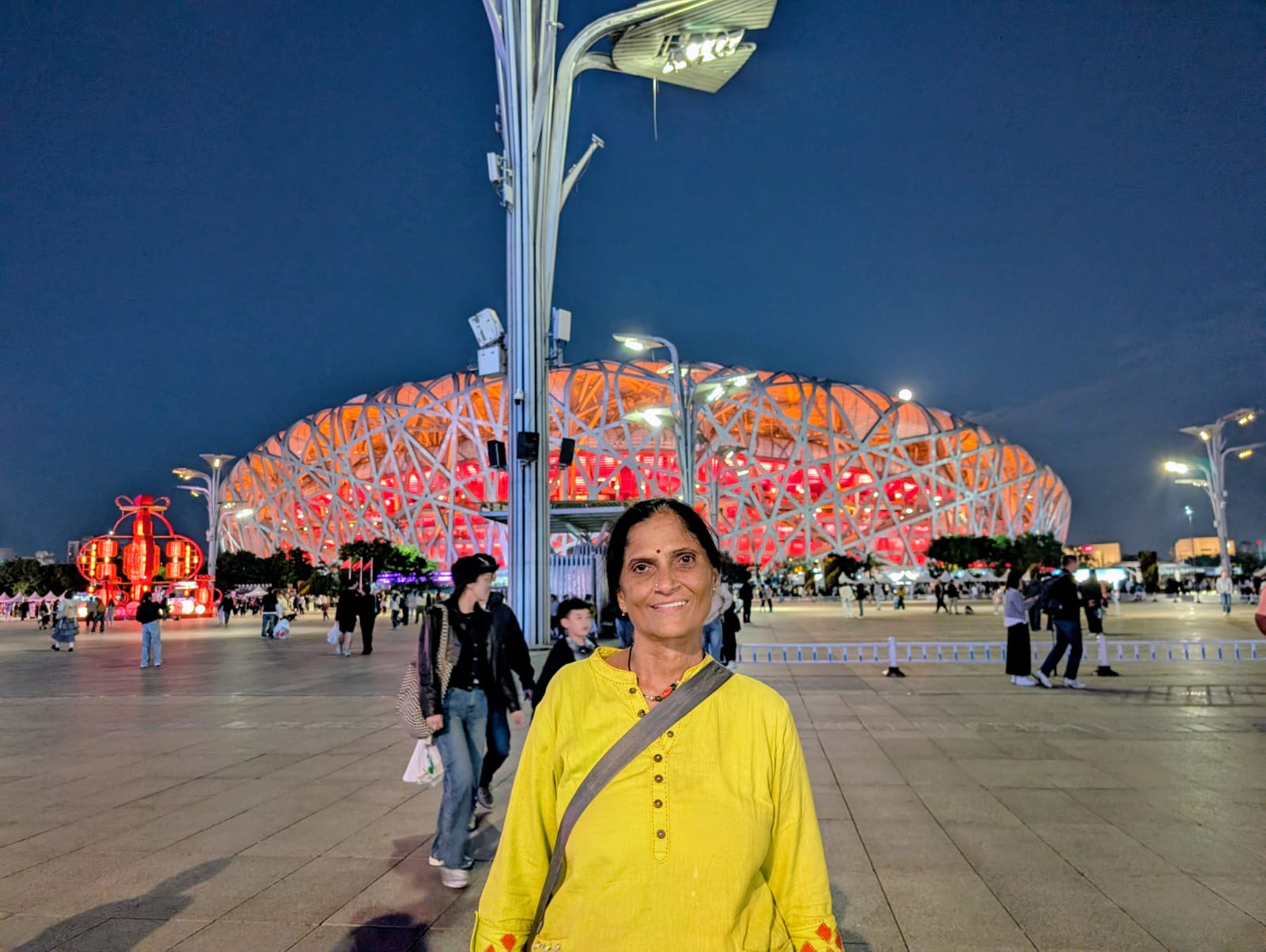 బీజింగ్ చైనాలో రెండో అతిపెద్ద నగరం. పీపుల్స్ రిపబ్లిక్ ఆఫ్ చైనాకు రాజధాని. దీనిని పూర్వం ‘ పెకింగ్ ‘అనే పేరుతో పిలిచే వాళ్ళు. జనాభా సుమారు 22 మిలియన్లు. ప్రపంచంలోని ముఖ్యమైన పర్యాటక నగరాలలో బీజింగ్ ఒకటి. మూడు వేల యేళ్ళ చరిత్ర కలిగిన పురాతన మైన నగరం. అందువల్ల వల్ల పాత కొత్తల మేళవింపుతో అక్కడి సంస్కృతి కనిపించింది. చరిత్రకు, రాజకీయాలకు కళలకు, క్రీడలకు, వ్యాపారానికి బీజింగ్ నెలవు. అందులోనూ మేం వెళ్ళింది అక్టోబర్ మొదటి వారం. ఆ రోజులు వాళ్ళకు సెలవు దినాలు. అందువల్ల కాబోలు పర్యాటక ప్రదేశాలన్నీ రద్దీగా ఉన్నాయి. సంప్రదాయ దుస్తులు ధరించిన చాలా మంది అమ్మాయిలు వీధుల్లో కనిపించారు. కుటుంబాలు, మిత్రులతో సంతోషంగా విందులు చేసుకుంటూ వీధులలో ప్రజల సందడి కనిపించింది.