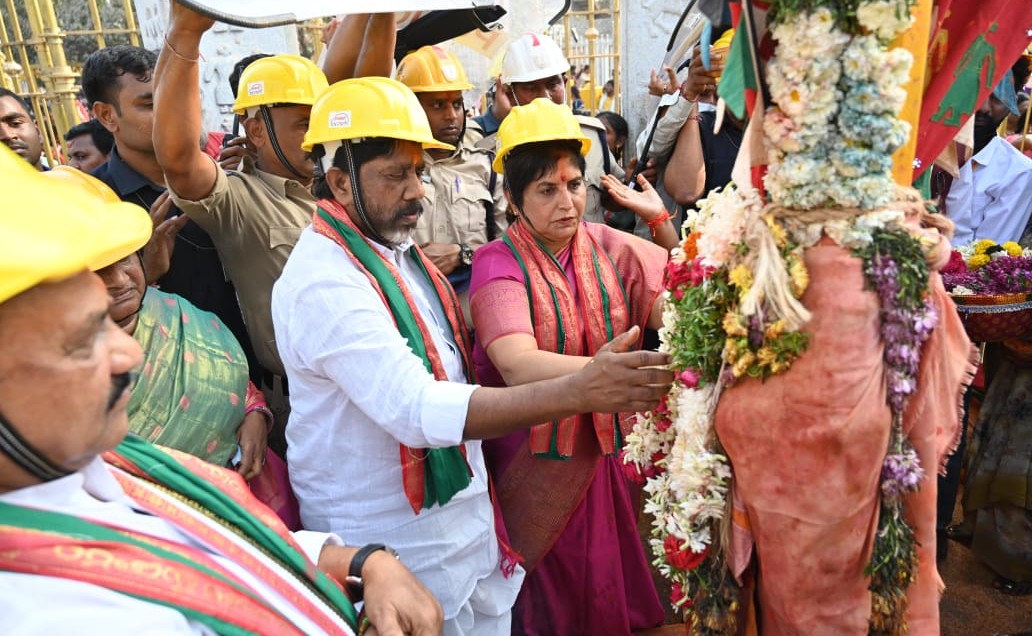 మేడారం, ప్రజాతంత్ర, జనవరి 29: రాష్ట్ర ఉప ముఖ్యమంత్రి మల్లు భట్టి విక్రమార్క కుటుంబ సభ్యులతో కలిసి గురువారం సాయంత్రం మేడారం సమ్మక్క సారలమ్మ అమ్మవార్లను దర్శించుకుని ప్రత్యేక పూజలు నిర్వహించారు. అనంతరం నిలువెత్తు బంగారాన్ని సమర్పింకున్నారు. ఈ సందర్భంగా ఆయన మాట్లాడుతూ మేడారం జాతరకు ప్రభుత్వం అన్ని రకాల సౌకర్యాలు ఏర్పాటు చేసిందని, భక్తులందరూ ఎలాంటి హడావుడి, తొక్కిసలాటకు గురికాకుండా ప్రశాంతంగా అమ్మవార్లను దర్శించుకుని ఇళ్లకు క్షేమంగా తిరిగి చేరుకోవాలని సూచించారు. అమ్మవార్ల దయవల్ల అందరికీ మంచి జరగాలని భట్టి ఆకాంక్షించారు. వీరి వెంట మంత్రులు దనసరి అనసూయ సీతక్క, పొంగులేటి శ్రీనివాస్రెడ్డి కూడా ఉన్నారు.