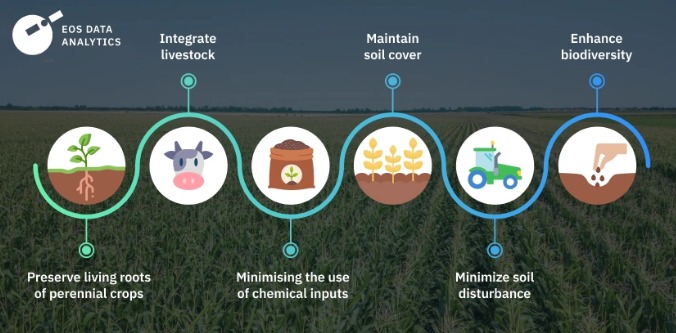 పునరుత్పాదక వ్యవసాయం వ్యవసాయాన్ని ప్రకృతితో భాగస్వామ్యంగా పునర్నిర్వచించింది. దాని ప్రధాన సూత్రం పంటలను వైవిధ్యపరచడం – నేలలను క్షీణింపజేసే, తెగుళ్ళను ఆహ్వానించే ఏక పంట పద్ధతులను తిరస్కరిస్తుంది. పంట మార్పిడి, అంతర విత్తనాలు, రిలే ప్లాంటింగ్, వ్యవసాయ అటవీ వంటి పద్ధతుల ద్వారా, రైతులు దిగుబడిని కొనసాగిస్తూ పర్యావరణ వ్యవస్థలను పోషిస్తారు. ఉదాహరణకు, మొక్కజొన్నతో నత్రజని-స్థిరపరిచే సోయాబీన్లను ప్రత్యామ్నాయంగా మార్చడం ఎరువుల వాడకాన్ని తగ్గిస్తుంది మరియు నేల సూక్ష్మజీవులను పోషిస్తుంది. జీవవైవిధ్య స్ట్రిప్లు, చెట్ల రేఖలు పరాగ సంపర్కాలు, వన్యప్రాణులకు ఆవాసాలను సృష్టిస్తాయి, పర్యావరణ వ్యవస్థ స్థితిస్థాపకత బలపరుస్తాయి. ఈ పద్ధతులు వ్యవసాయ భూమిని నిలబెట్టడమే కాదు – అది దానిని పునరుత్పత్తి చేస్తాయి, దీర్ఘకాలిక సంతానోత్పత్తి ఉత్పాదకతను పెంపొందిస్తాయి. రసాయన ఇన్పుట్ల మితిమీరిన వినియోగం చాలా కాలంగా నేలలు పర్యావరణ వ్యవస్థలకు హాని కలిగించింది.