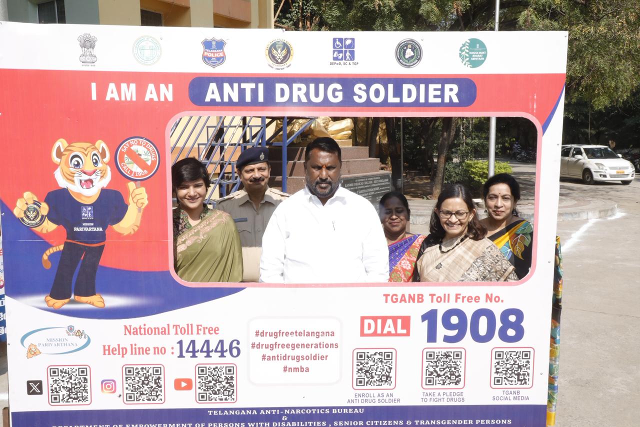 హైదరాబాద్, ప్రజాతంత్ర, నవంబర్ 18: మత్తు పదార్థాల బారి నుండి పూర్తిగా విముక్తి రాష్ట్రంగా తీర్చిదిద్దేందుకు ప్రజా ప్రభుత్వం కఠిన చర్యలు చేపట్టిందని దివ్యాంగులు, వయోవృద్ధులు, ట్రాన్స్జెండర్ సాధికారత శాఖల మంత్రి అడ్లూరి లక్ష్మణ్ కుమార్ అన్నారు. గాంధీ మెడికల్ కళాశాల స్వామి వివేకానంద ఆడిటోరియంలో రాష్ట దివ్యాంగులు, వయోవృద్ధులు, ట్రాన్స్జెండర్ వ్యక్తుల సాధకారిత శాఖ ఆధ్వర్యంలో మంగళవారం ఏర్పాటు చేసిన నషాముక్త్ భారత్ అభియాన్ 5వ వార్షికోత్సవంలో మంత్రి అడ్లూరి పాల్గొన్నారు. ఈ సందర్భంగా ఆయన మాట్లాడుతూ యువతను చదువు, ఉద్యోగావకాశాలు, వ్యక్తిత్వ వికాసంలో నిలబెట్టడం ప్రభుత్వ ప్రధాన బాధ్యతగా ఉందని మంత్రి అన్నారు. రాష్ట్రంలో డ్రగ్ సరఫరా మార్గాలను పూర్తిగా నిర్మిలించడానికి ప్రవేశపెట్టిన ఈగల్ స్పెషల్ యూనిట్ కీలక పాత్ర పోషిస్తోందని వివరించారు. రియల్ టైమ్ ఇంటెలిజెన్స్, డేటా విశ్లేషణ, వేగవంతమైన ఆపరేషన్లతో ఈ వ్యవస్థ రాష్ట్ర పోలీసింగ్ విధానాన్ని కొత్త దిశలో నడిపిస్తోందన్నారు. మత్తు వ్యసనం వ్యక్తిగత అలవాటు కాదు.. ఇది కుటుంబాలను కూల్చివేసే ఒక అగ్ని కీల అని పేర్కొన్నారు. యువత రక్షణ తెలంగాణ భవిష్యత్తు రక్షణేనని ముఖ్యమంత్రి అభిప్రాయమని అన్నారు. యువత కోసం ప్రత్యేక అవగాహన కార్యక్రమాలు, కళాశాలల్లో కౌన్సెలింగ్ సేవలు, స్పోర్ట్స్-కల్చరల్ ఈవెంట్లు, డ్రగ్ ఫ్రీ క్యాంపెయిన్లు, మారథాన్లు నిర్వహిస్తున్నందున సానుకూల వాతావరణం ఏర్పడుతోందని తెలిపారు. తల్లిదండ్రులు, ఉపాధ్యాయులు, సమాజంలోని ప్రతి వర్గం భాగస్వామ్యం అవసరమని అన్నారు. డ్రగ్స్కు దూరంగా%ౌ% కెరీర్కు దగ్గరగా, విజయాలకు దగ్గరగా, భవిష్యత్తుకు దగ్గరగా’’ అనే నినాదాన్ని విద్యార్థి జీవన సూత్రంగా తీసుకోవాలని మంత్రి పిలుపునిచ్చారు. మాదకద్రవ్యాల నిర్మూలనలో సేవలందిస్తున్న వలంటీర్లను సన్మానించారు. ఈ సందర్భంగా కళాకారులు ప్రదర్శించిన నాటక ప్రదర్శన, ఆటలు, పాటలు, మత్తు వ్యసనంపై అవగాహన కార్యక్రమాలు వీక్షకులను ఆకట్టుకున్నాయి. మత్తు నిరోధక చర్యల్లో భాగంగా రాష్ట్రవ్యాప్తంగా ఎన్ఎంబీఏ కమిటీలు ఏర్పాటు చేసి పాఠశాలలు-కళాశాలల్లో క్లబ్లు స్థాపించామని మంత్రి వివరించారు. ఇప్పటివరకు 15,891 విద్యాసంస్థల్లో 7,018 కార్యక్రమాల ద్వారా 1.45 కోట్ల మందికి అవగాహన కల్పించామని చెప్పారు. ఇది దేశంలోనే అతిపెద్ద డ్రగ్స్ అవగాహన కార్యక్రమమని మంత్రి అడ్లూరి స్పష్టం చేశారు. యువత పునరావాసానికి ప్రత్యేక చర్యలలో భాగంగా సైదాబాద్ అబ్జర్వేషన్ హోమ్లో పిల్లల కోసం డీ-అడిక్షన్ సెంటర్ ఏర్పాటు చేసినట్టు, చర్లపల్లి, నిజామాబాద్, చంచల్గూడ, సంగారెడ్డిలో జైళ్లలో ప్రత్యేక చికిత్సా సేవలు ప్రారంభించామని చెప్పారు. పది జిల్లాల్