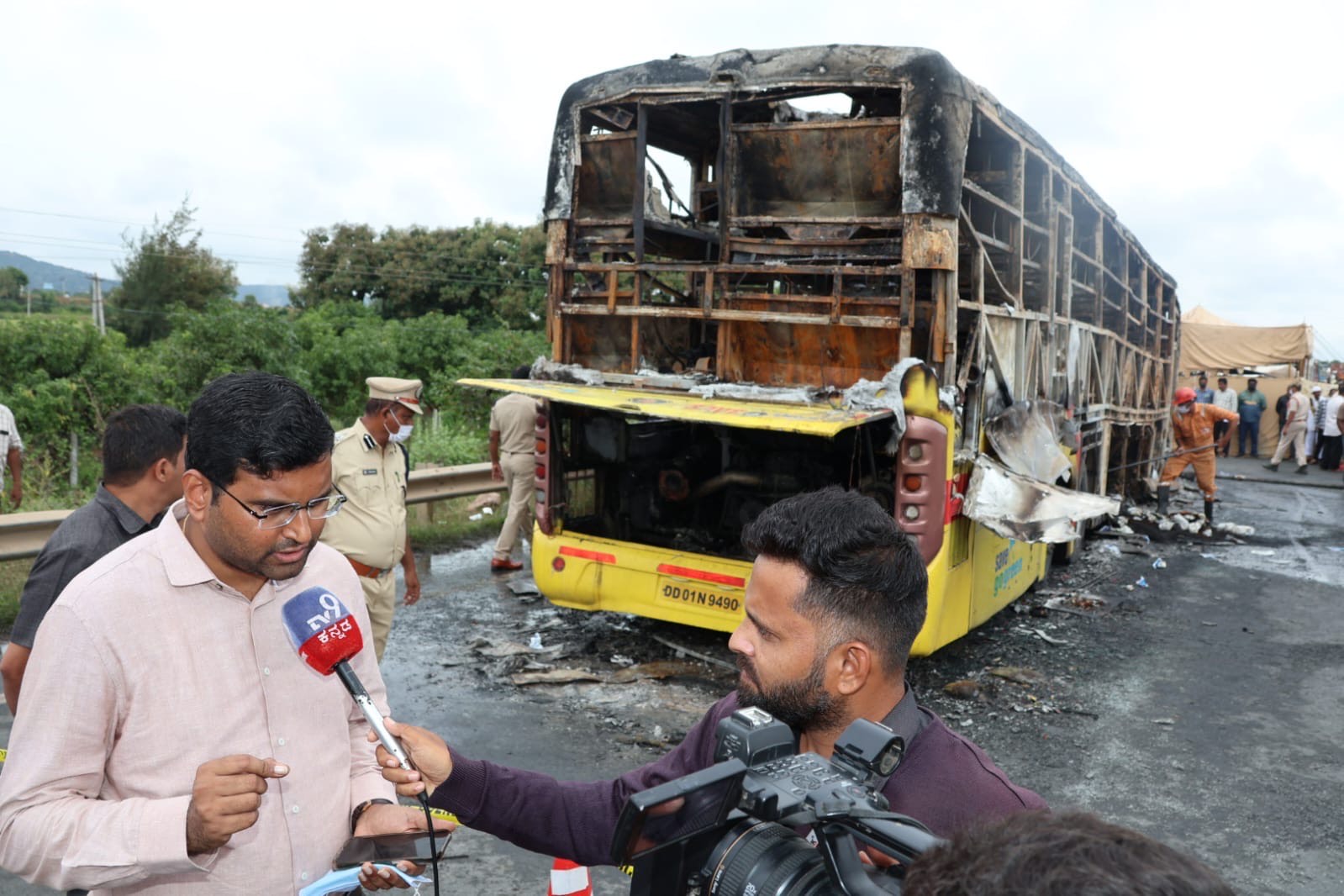 * ప్రమాద కారణం: ఢీకొన్న తర్వాత బస్సులోని ఇంధన ట్యాంకు లీక్ అవ్వడం లేదా మోటార్సైకిల్ కింద పడిపోవడం వల్ల ఏర్పడిన ఘర్షణ కారణంగా బస్సులో మంటలు చెలరేగాయి. ఆ మంటలు వేగంగా వ్యాపించడంతో బస్సు పూర్తిగా దగ్ధమైంది.