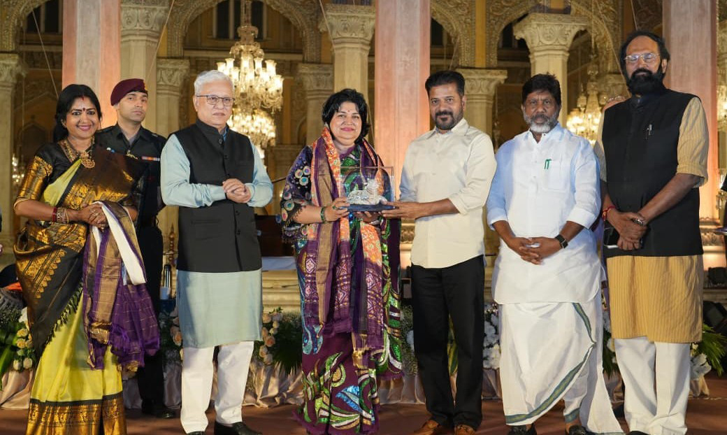 హైదరాబాద్, ప్రజాతంత్ర, జనవరి 17: హైదరాబాద్ చౌమహల్లా ప్యాలెస్లో తెలంగాణ సంగీత నాటక అకాడమీ ఆధ్వర్యంలో అనిత సింఫ్వీు గజల్ కార్యక్రమం శనివారం జరిగింది. ఈ కార్యక్రమానికి గవర్నర్ జిష్ణుదేవ్ వర్మ, ముఖ్యమంత్రి రేవంత్రెడ్డి, మంత్రులు భట్టి వికమ్రార్క, కెప్టెన్ ఉత్తమ్కుమార్ రెడ్డి తదితరులు పాల్గొన్నారు. ఈ సందర్భంగా అనితను ముఖ్యమంత్రి తదితరులు సన్మానించారు.