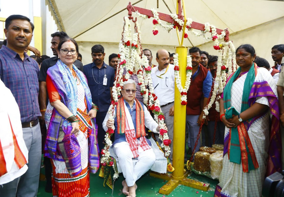 మేడారం, ప్రజాతంత్ర, జనవరి 30ః రాష్ట్ర గవర్నర్ జిష్ణు దేవ్ వర్మ మేడారం మహా జాతరను శుక్రవారం సంరర్శించారు. ఈ సందర్భంగా ఆయనకు పంచాయతీరాజ్ శాఖ మంత్రి దనసరి అనసూయ సీతక్క, మహబూబాబాద్ పార్లమెంట్ సభ్యుడు పోరిక బలరాం నాయక్, జిల్లా కలెక్టర్ దివాకర టిఎస్, ఎస్పీ సుధీర్ రాంనాథ్ కేకన్ లు ఘన స్వాగతం పలికారు. ఆసియా ఖండంలోనే అతిపెద్ద గిరిజన జాతర సమ్మక్క సారలమ్మ జాతర అని ఆయన పేర్కొన్నారు. తులాభారం తూగి నిలువెత్తు బంగారాన్ని వనదేవతలకు మొక్కలు సమర్పించుకున్నారు.
