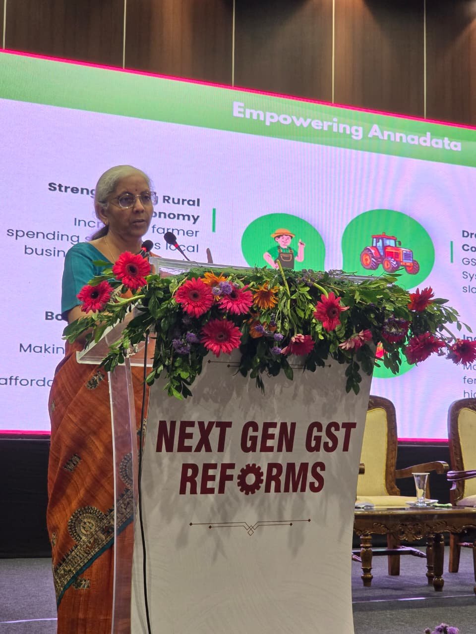 విశాఖపట్నం,సెప్టెంబర్17: దేశంలోని 140 కోట్ల మందికి వర్తించే విధంగా జీఎస్టీపై పెద్ద నిర్ణయం తీసుకున్నామని కేంద్ర ఆర్థిక మంత్రి నిర్మలా సీతారామన్ అన్నారు. జీఎస్టీ కౌన్సిల్ నిర్ణయాలు ఈనెల 22 నుంచి అమల్లోకి వస్తాయని చెప్పారు. విశాఖపట్నంలోని మధురవాడలో జీఎస్టీ సంస్కరణలపై నిర్వహించిన సమావేశంలో నిర్మలా సీతారామన్ మాట్లాడారు. ప్రధానంగా వ్యవసాయరంగానికి ఎంతో మేలు చేకూర నుందని అన్నారు. రైతులకు మేలు చేసే విషయంలో నష్టమైనా ఫర్వాలేదని ప్రధాని మోడీ పట్టుబట్టారని అన్నారు. ఇప్పటికే అనేక రంగాల్లో జీఎస్టీ ప్రయోజనాలు చేకూరాయి. నాలుగు శ్లాబ్ల నుంచి రెండు శ్లాబ్లకు తగ్గించాం. 12 శాతంలో ఉండే వస్తువులు దాదాపు 99 శాతం 5 శాతం శ్లాబ్ పరిధిలోకి తీసుకొచ్చాం. 28 శాతం శ్లాబ్లో ఉండే సిమెంట్ సహా 90 శాతం వస్తువులు 18 శాతం శ్లాబ్ పరిధిలోకి తెచ్చాం. 2017కు ముందు 17 రకాల పన్నులు ఉండేవి.. వాటిపై 8 సెస్సులు కూడా ఉండేవి. ఉదాహరణకు 2017కు ముందు సబ్బు ధర ఒక్కో రాష్ట్రంలో ఒక్కోలా ఉండేది. అన్నింటినీ కలిపి దేశవ్యాప్తంగా ఒకే పన్ను.. నాలుగు శ్లాబ్ల రూపంలో తీసుకొచ్చిందే జీఎస్టీ అని అన్నారు. 2017-18 ఆర్థిక సంవత్సరంలో జీఎస్టీ ద్వారా రూ.7.19లక్షల కోట్ల ఆదాయం వచ్చింది. 2024-25 ఆర్థిక సంవత్సరంలో రూ.22.08 లక్షల కోట్ల ఆదాయం లభించింది. ప్రజలపై భారం తగ్గించేందుకే జీఎస్టీ తీసుకొచ్చాం. పాలు, పెరుగు సహా పలు నిత్యావసరాలను 5 శాతం శ్లాబ్ నుంచి సున్నా శాతానికి తీసుకొచ్చాం. మధ్యతరగతికి ఉపశమనం కలిగించేలా చర్యలు తీసుకున్నాం. కారు, ఫ్రిజ్, ఏసీని 28 శాతం నుంచి 18 శాతానికి తీసుకొచ్చాం. ఆత్మనిర్భర్ భారత్కు జీఎస్టీ నూతన సంస్కరణలు పెద్ద ఊతం. మహిళల ఆరోగ్యం కోసం శానిటరీ న్యాప్కిన్స్పై పన్నును సున్నా చేశాం. యూపీఏ ప్రభుత్వంలో 30 శాతం ఉన్న వస్తువులను ఇప్పుడు 5 శాతానికి తెచ్చాం. సరళతరమైన పన్ను విధానాన్ని తీసుకురాలేని వాళ్లు ఇప్పుడు విమర్శలు చేస్తారా? గతంలో 65 లక్షల మంది పన్ను చెల్లింపుదారులు ఉండేవాళ్లు. ఈ 8 ఏళ్లలో ఆ సంఖ్య 1.51 కోట్లకు చేరిందని నిర్మలా సీతారామన్ వివరించారు. ఇప్పటికే అనేక రంగాల్లో జిఎస్టి ప్రయోజనాలు చేకూరాయని కేంద్ర ఆర్థిక శాఖ మంత్రి నిర్మలా సీతారామన్ తెలిపారు. జిఎస్టి స్లాబులను నాలుగు నుంచి రెండుకు తగ్గించామని అన్నారు.అన్నింటినీ కలిపి ఒకే పన్ను, నాలుగు స్లాబ్ లుగా తీసుకొచ్చిందే జిఎస్టి అని తెలియజేశారు. 2017 కు ముందు సబ్బు ధర ఒక్కో రాష్ట్రంలో ఒక్కోలా ఉండేదని, 2017 కు ముందు 65 లక్షల మంది పన్ను చెల్లించే వారని అన్నారు. ఈ 8 ఏళ్లలో పన్ను చెల్లింపు దారులు 1.51 కోట్లకు చేరారని, 2018 లో జిఎస్టి ద్వారా రూ. 7.19 లక్షల కోట్ల ఆదాయం వచ్చిందని కొనియాడారు. 2025 లో జిఎస్టి ద్వారా రూ. 22.08 లక్షల కోట్ల ఆదాయం వచ్చిందని, ప్రజలపై భారం తగ్గించే