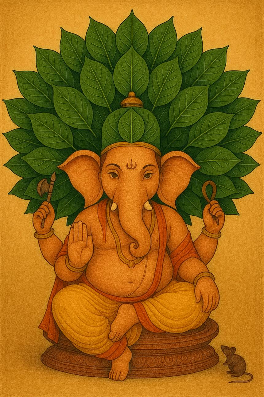 శివుని మెడలో పాము, వాహనం నంది,శివాని అనగా పార్వతీ దేవి వాహనం సింహం.వినాయక వాహనం ఎలుక,షణ్ముఖ స్వామి వాహనం నెమలి,ఇలా ఈ జంతుజాలం అంతా పరస్పరం ఒకదానికొకటి ఆహారం. గణపతి ని పత్రితో పూజించడం విశేషం.ఈ కాలంలోవచ్చే వ్యాధుల్ని,వాతావరణ కాలుష్యాన్ని నిరోధించే వివిధ రకాల ఔషధాలు కలవు.ఈ పత్రిని సమర్పిస్తే వినాయకుడు మహాధనంద పడతాడు అంటారు సుందర ,సుగంధ పుష్ప పత్రాలెన్నో ఉండగా వినాయకుడిని “దూర్వాంకురాలు”, అనగా గరికతో పూజిస్తేనే సంతుష్టుడు అవుతాడని అంటారు.అనలాసురుడు అనే రాక్షసున్ని మింగిన గణనాధుని తాపానికి ఈ దూర్వాంకురాలే తాపోపశమనాన్ని కలిగించాయి. అప్పుడు వినాయకుడు నా పూజలో ముఖ్యమైనవి ఈ గడ్డి పోచలే,ఇవిలేని పూజవల్లా ప్రయోజనం ఉండదు.