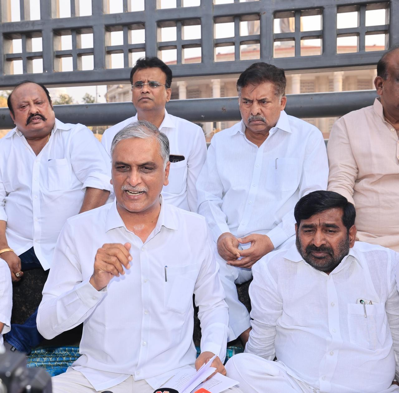 కాంగ్రెస్ పార్టీ పట్టపగలు ప్రజాస్వామ్యం గొంతు కోసిందని, అసెంబ్లీ బయట ప్రశ్నిస్తే కేసులు, అక్రమ అరెస్టులు చేస్తున్నారని, అసెంబ్లీ లోపల ప్రశ్నిస్తే సస్పెన్షన్ విధించి గొంతు నొక్కుతున్నారని మాజీమంత్రి హరీష్ రావు ధ్వజమెత్తారు. జగదీశ్ రెడ్డి ఈ ప్రభుత్వ వైఫల్యాలను ఎత్తి చూపినందుకు సస్పెండ్ చేస్తారా అని నిలదీశారు. కాంగ్రెస్ పార్టీ మంత్రులు సభ్యులు మధ్యలో అడ్డుకునే యత్నం చేస్తే. స్పీకర్ వారిని అదుపు చేసి శాసనసభను ప్రశాంతంగా నడిపించాలని కోరారు. అసెంబ్లీలో ప్రజల సమస్యపై మాట్లాడే అవకాశం ప్రతిపక్షాలకు లేకుండా చేస్తున్నారు. అసెంబ్లీ స్పీకర్గా ప్రసాద్ ని ప్రతిపాదించినప్పుడు బిఆర్ఎస్ పార్టీ సంపూర్ణ మద్దతు ప్రకటించింది. దేశంలో ఎక్కడా లేనివిధంగా 125 అడుగుల ఎత్తు అంబేడ్కర్ విగ్రహాన్ని బిఆర్ఎస్ ప్రభుత్వం నెలకొల్పింది. రాష్ట్ర సచివాలయానికి అంబేడ్కర్ పార్టీ పేరు పెట్టింది కేసీఆర్.