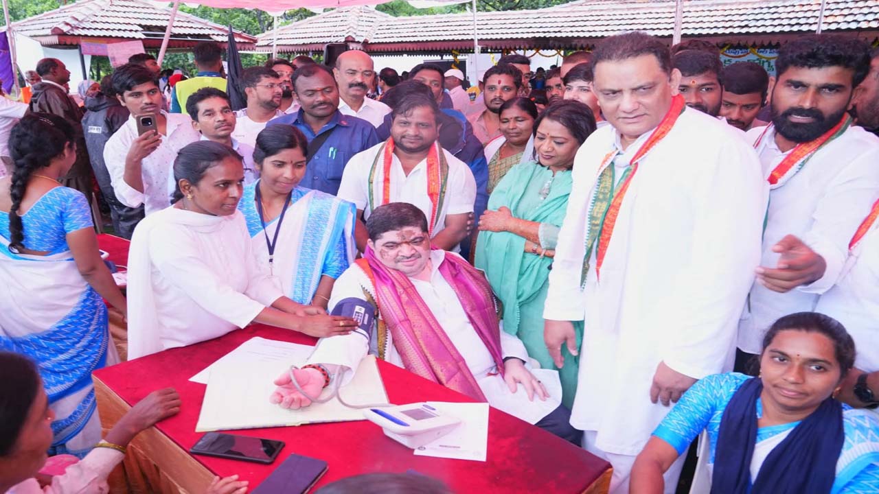 హైదరాబాద్, ప్రజాతంత్ర, జులై 23: హైదరాబాద్ నగరంలోని అన్ని ప్రాంతాల్లో ప్రజల ఆరోగ్యం మెరుగు కోసం జీహెచ్ఎంసీ ఆధ్వర్యంలో వైద్య శిబిరాలు ఏర్పాటు చేస్తున్నట్లు బీసీ, రవాణా శాఖల, జిల్లా ఇన్చార్జి మంత్రి పొన్నం ప్రభాకర్ తెలిపారు. జూబ్లీహిల్స్ నియోజకవర్గంలోని కృష్ణకాంత్ పార్కులో జీహెచ్ఎంసీ కార్మికులు, ఉద్యోగులు, పొదుపు సంఘాల సభ్యులకు ప్రత్యేక వైద్య శిబిరాన్ని ఆయన బుధవారం ప్రారంభించారు. ఈ సందర్భంగా మంత్రి వైద్య శిబిరంలో ఆరోగ్య పరీక్షలు చేయించుకుని మాట్లాడుతూ ముఖ్యమంత్రి ఆదేశాల మేరకు దవాఖానకు పోకుండా ఏ పరీక్షలైనా ఇక్కడే జరిపి అవసరమైన చికిత్సకు హాస్పిటల్ పంపించేలా వీటిని ఏర్పాటు చేశామంటూ హైదరాబాద్లో ఉన్న ప్రతీ వ్యక్తి హెల్త్ క్యాంప్ వినియోగించుకోవాలని కోరారు. జిల్లా రెవెన్యూ, మున్సిపల్, మెడికల్ సిబ్బంది కలిసి నగరంలో ఉన్న 169 బస్తీ దవాఖానలు, 91 ప్రాథమిక ఆరోగ్య కేంద్రాలు, 11 స్పెషాలిటీ హాస్పిటల్స్ పరిధిలోని 30 ఏరియాల్లో ఈ హెల్త్ క్యాంపులు నిర్వహించనున్నట్లు చెప్పారు. నిన్నటి వరకు బోనాల పండుగ అయింది.. సీజన్ మారుతోంది.. వాతావరణ మార్పు వల్ల జబ్బులు వచ్చే అవకాశం ఉంది.. మీ ఆరోగ్యాలు కాపాడడానికి మీ ఏరియాకు వైద్య బృందాలు వస్తున్నాయి అని పొన్నం వివరించారు. పేదలకు అండగా ఉండేందుకు 200 యూనిట్ల ఉచిత విద్యుత్ సరఫరా చేస్తున్నామని, పేద ప్రజలు కూడా సన్న బియ్యం తినాలని వాటిని పంపిణీ చేస్తున్నామని, పదేళ్ల తర్వాత రేషన్ కార్డులు ఇస్తున్నామని, హైదరాబాద్లో 53 వేల రేషన్ కార్డులు పంపిణీకి సిద్ధంగా ఉన్నాయని తెలిపారు. మీ ఆశీర్వాదంతో ఏర్పడిన ప్రజా పాలన ప్రభుత్వం రేషన్ కార్డులు, ఇందిరమ్మ ఇళ్లు తదితర అన్ని కార్యక్రమాలు చేస్తున్నదని చెప్పారు. ఆర్టీసీలో మహిళల 200 కోట్ల ఉచిత టికెట్లు మైలురాయి దాటిందంటూ మహిళలకు శుభాకాంక్షలు తెలిపారు. గురుకులాల్లో నాణ్యమైన ఆహారం అందించడానికి మెస్ చార్జీలు పెంచామని, చదువుకున్న వారికి 60 వేల ఉద్యోగాలు ఇచ్చామని చెప్పారు. కాగా, వైౖద్య పరీక్షల కోసం జీహెచ్ఎంసీ కార్మికులు భారీగా హాజరవ్వగా వారికి హెల్త్ కిట్స్ మంత్రి పొన్నం పంపిణీ చేశారు. కార్యక్రమంలో మేయర్ గద్వాల విజయలక్ష్మి, జీహెచ్ఎంసీ కమిషనర్ ఆర్వీ కర్ణన్, కలెక్టర్ దాసరి హరిచందన, కార్పొరేటర్లు, అజారుద్దీన్, నవీన్ యాదవ్ తదితర ముఖ్య నేతలు, అధికారులు పాల్గొన్నారు