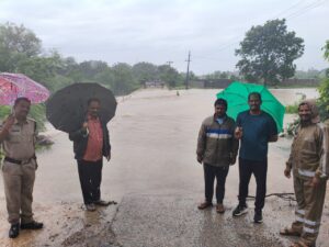 జిల్లాలో భారీ వర్షాలు నేపథ్యంలో అప్రమత్తమైన అధికారులు…యాదగిరిగుట్ట, ప్రజాతంత్ర, ఆగస్ట్ 27 :యాదగిరిగుట్ట మండలం, చొల్లేరు గ్రామములొ భారీ వర్షాల కారణంగా వాగులు వంకలలో వర్షం నీరు భారీగా ప్రవహిస్తుండడంతో చోలేరు రోడ్డు మీదుగా నిరు ప్రవహిస్తుండడంతో ఆ మార్గంలో ప్రయాణించే ప్రయాణికులకు ఎలాంటి అవాంఛనీయ సంఘటన జరగకుండా అప్రమత్తమైన అధికారులు రోడ్డుకు ఇరువైపులా బార్ గేట్లు ఏర్పాటు చేసి ఆ రోడ్డు మార్గంలో ప్రయాణాలను నిలిపివేశారు.