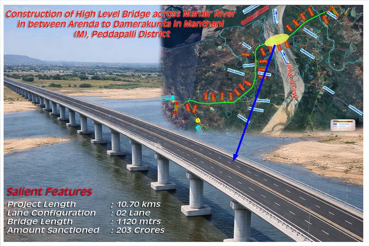 మంథని, ప్రజాతంత్ర, డిసెంబర్ 20: మంథని మండలంలోని ఆరెంద మీదుగా దామెరకుంట వరకు మానేరు నదిపై హై లెవల్ బ్రిడ్జి నిర్మాణానికి, మరోవైపు దామెరకుంట రోడ్డుకు సంబంధించిన అప్రోచ్ రోడ్డు కమ్ రోడ్డు పనుల కోసం తెలంగాణ రాష్ట్ర ప్రభుత్వం ఆర్ అండ్ బి శాఖ ద్వారా రూ.203 కోట్ల నిధులను మంజూరు చేసింది.తెలంగాణ రాష్ట్ర ఐటి,పరిశ్రమల శాఖ మంత్రి దుద్దిళ్ళ శ్రీధర్ బాబు ఆదేశాల మేరకు ఈ నిధుల మంజూరు అయ్యాయి.ఈ ప్రాజెక్టులో భాగంగా 1.120 కిలోమీటర్ల పొడవు,13 మీటర్ల వెడల్పుతో హై లెవల్ బ్రిడ్జితో పాటు 9.530 మీటర్ల వెడల్పుతో అప్రోచ్ రోడ్డు నిర్మించనున్నారు.ఈ బ్రిడ్జి నిర్మాణంతో పెద్దపల్లి జిల్లా మంథని మండల ప్రజలు మాత్రమే కాకుండా పరిసర మండలాల ప్రజలు ఇతర జిల్లాలకు,మహారాష్ట్ర కు,కాలేశ్వరం దేవాలయానికి,జయశంకర్ భూపాలపల్లి జిల్లా కాటారం ప్రాంతాలకు సులభంగా ప్రయాణించే అవకాశం కలుగనుంది.ముఖ్యంగా కాలేశ్వరం వెళ్లే దూరం సుమారు 25 కిలోమీటర్ల వరకు తగ్గనుందని అధికారులు వెల్లడించారు.ఈ ప్రాజెక్టు పూర్తయ్యితే కాలేశ్వరం టూరిజం అభివృద్ధి పెరగడమే కాకుండా,ఆరెంద,మల్లారం,వెంకటాపూ