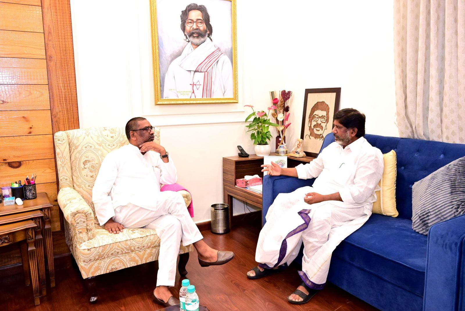 రాంచీ, సెప్టెంబర్ 10: జార్ఖండ్ పర్యటనలో భాగంగా ఉప ముఖ్యమంత్రి భట్టి విక్రమార్క మల్లు ఆ రాష్ట్ర ముఖ్యమంత్రి హేమంత్ సోరెన్ను రాంచీలో బుధవారం మర్యాదపూర్వకంగా కలిశారు. ఈ సందర్భంగా రెండు రాష్ట్రాల్లో జరుగుతున్న వివిధ అభివృద్ధి కార్యక్రమాలు, ప్రస్తుత రాజకీయ పరిణామాలు తదితర అంశాలపై చర్చించారు. జార్ఖండ్ ముక్తి మోర్చా వ్యవస్థాపకుడు, రాష్ట్ర మాజీ ముఖ్యమంత్రి, హేమంత్ తండ్రి శిబూ సోరెన్ ఇటీవల అనారోగ్యంతో మృతిచెందిన విషయం విదితమే. శిబూ సోరెన్ మృతి పట్ల డిప్యూటీ సీఎం తన సంతాపాన్ని ప్రకటించారు. ఇటీవల జరిగిన జార్ఖండ్ అసెంబ్లీ ఎన్నికల్లో కాంగ్రెస్ పార్టీ ఇన్చార్జిగా భట్టి విక్రమార్క అక్కడ విస్తృతంగా పర్యటించి హేమంత్ సోరెన్తో కలిసి ప్రచారం నిర్వహించారు. జేఎంఎం, కాంగ్రెస్ కూటమి ఆ ఎన్నికల్లో విజయం సాధించడంలో భట్టి విక్రమార్క కీలక భూమిక పోషించారు.