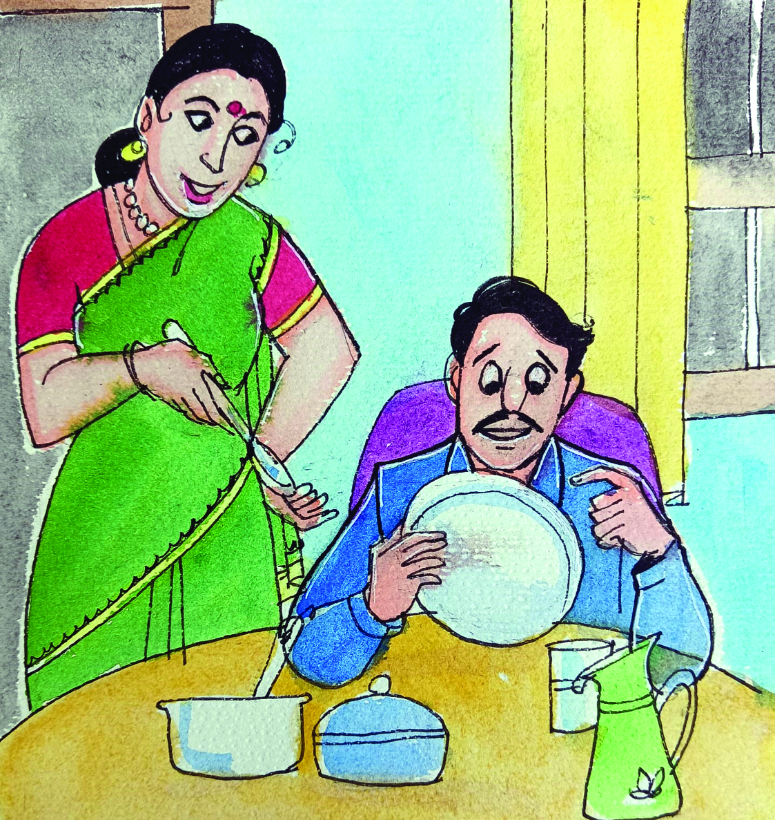 ఆ తర్వాత యెప్పుడూ ఖాళీ ప్లేటు పెట్టకుండా ముందే వడ్డించి పెట్టడం కూడా మా ఆవిడ అలవాటు చేసుకుంది.