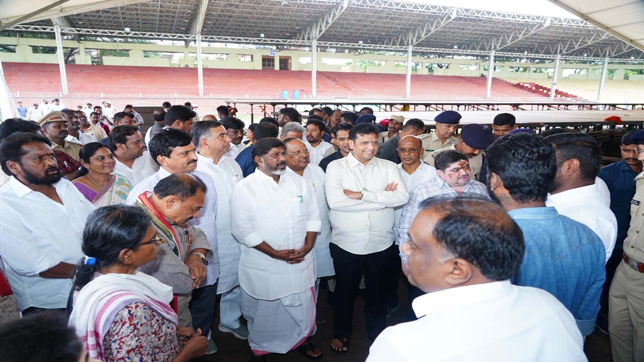 హైదరాబాద్, ప్రజాతంత్ర, జులై 2: హైదరాబాదులోని ఎల్బీ స్టేడియంలో ఈనెల 4న ఏర్పాటు చేస్తున్న అఖిల భారత కాంగ్రెస్ కమిటీ అధ్యక్షుడు మల్లికార్జున ఖర్గే సభను విజయవంతం చేయాలని గ్రామ శాఖ అధ్యక్షుడు మొదలు మంత్రులు, ఎమ్మెల్యేలు, ఎంపీలకు డిప్యూటీ సీఎం భట్టి విక్రమార్క మల్లు పిలుపునిచ్చారు. ఖర్గే పర్యటన నేపథ్యంలో రాష్ట్ర కాంగ్రెస్ వ్యవహారాల ఇన్చార్జి మీనాక్షి నటరాజన్, పీసీసీ అధ్యక్షుడు మహేష్ కుమార్ గౌడ్, హైదరాబాద్ జిల్లా ఇన్చార్జి మంత్రి పొన్నం ప్రభాకర్, రంగారెడ్డి జిల్లా ఇన్చార్జి మంత్రి దుద్దిళ్ళ శ్రీధర్బాబు, రెవెన్యూ మంత్రి పొంగులేటి శ్రీనివాస్ రెడ్డి, డిసిసి అధ్యక్షుడు రోహిన్రెడ్డిలతో కలిసి ఏర్పాట్లను బుధవారం ఆయన పర్యవేక్షించారు. ఈ సందర్భంగా మీడియాతో మాట్లాడుతూ గ్రామ శాఖ అధ్యక్షులతో అఖిల భారత కాంగ్రెస్ కమిటీ అధ్యక్షుడు మల్లికార్జున ఖర్గే నేరుగా సమావేశం కావడం దేశంలోనే ఇది మొదటిసారి అని డిప్యూటీ సీఎం వివరించారు. తెలంగాణ అనంతరం దేశవ్యాప్తంగా ఈ తరహా కార్యక్రమం ఉంటుందన్నారు. ఇంతటి ప్రాముఖ్యత ఉన్న సభ నేపథ్యంలో పెద్ద ఎత్తున ఏర్పాట్లు చేస్తున్నట్లు వివరించారు. 4వ తేదీ మధ్యాహ్నం 3 గంటలకల్లా రాష్ట్రంలోని పార్టీ గ్రామ శాఖ, మండల శాఖ, జిల్లా కమిటీల అధ్యక్షులు, ఎమ్మెల్యేలు, ఎంపీలు, మంత్రులు ఒకరికి మరొకరు సమాచారం చేరవేసుకొని సమన్వయంతో సభకు హాజరుకావాలని డిప్యూటీ సీఎం పిలుపునిచ్చారు. గ్రామ శాఖ అధ్యక్షులతో ఏఐసిసి అధ్యక్షుడు మాట్లాడే కార్యక్రమానికి మొదటి అవకాశం తెలంగాణ రాష్ట్రానికి ఇచ్చినందుకు ఏఐసీసీకి కృతజ్ఞతలు తెలిపారు. ఈ సమావేశం ద్వారా ఏఐసీసీ అధ్యక్షుడు ఖర్గేతో నేరుగా మాట్లాడే అవకాశం ఉన్న నేపథ్యంలో కాంగ్రెస్ నేతలు పెద్ద ఎత్తున తరలిరావాలని భట్టి విక్రమార్క పిలుపునిచ్చారు.