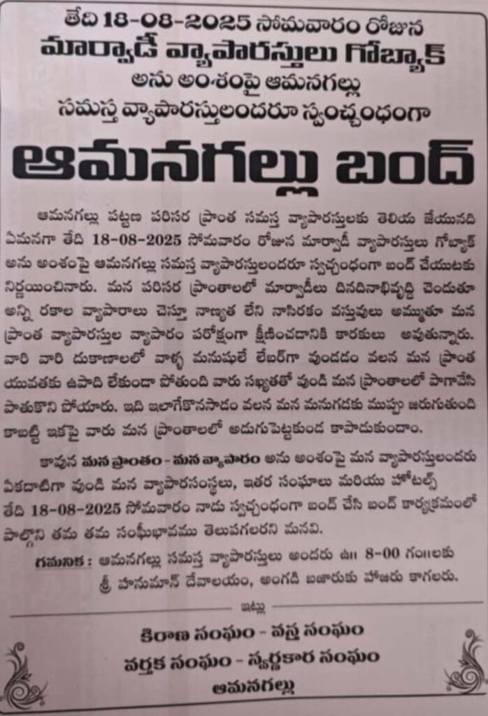 “మార్వాడీ గోబ్యాక్”ఉద్యమం తెలంగాణాలోఈ నినాదం తారాజువ్వలాగా ఇప్పుడు దూసుకుపోతుంది. తెలంగాణాలోని”ఆమనగల్లు”అనే ప్రాంతంలో ఇదే సమస్యపై బందుకు సైతం పిలుపు నిచ్చారు. ఎందుకంటే పదేళ్ళ క్రితం నిధులు,నియామకాలు,నీళ్ళు పేరుతో మోదలైన ఉద్యమ ఆకాంక్షలు నెరవేరలేదు. దీనికి అధికారం ఎలగబెట్టిన,పెడుతున్న రాజకీయ పార్టీలు అన్నీ జవాబుదారీ కావాల్సిందే..!ఈ ఉద్యమం మూలాలు అన్వేషణ చేయాలంటే ముందుగా అసలు ఈ మార్వాడీలు ఎవరు? ఎక్కడినుండి వచ్చారు?ఎందుకు తెలంగాణా కు వచ్చారు? ఇత్యాది ప్రశ్నలకు సమాధానాలు వెతుక్కోవాలి.