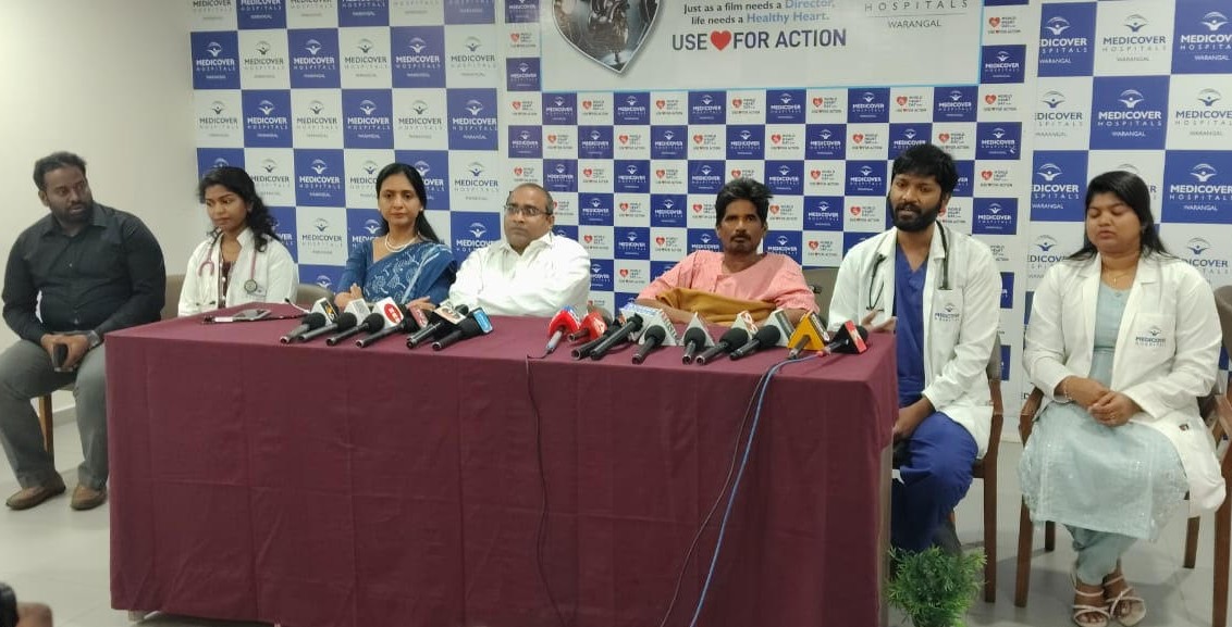 వరంగల్, ప్రజాతంత్ర, అక్టోబర్ 10: ప్రాణాపాయ స్థితిలో ఉన్న ఓ వ్యక్తిని నుండి వరంగల్ మెడికవర్ హాస్పిటల్ వైద్య బృందం కాపాడిరది. ఈమేరకు హాస్పిటల్ సెంటర్ హెడ్ నమ్రత శుక్రవారం విలేకరుల సమావేశంలో తెలిపారు. రాజారావు (51) అనే వ్యక్తి గుండె సంబంధిత తీవ్రమైన సమస్యలతో వరంగల్ మెడికవర్ హాస్పిటల్కు ప్రాణాపాయ స్థితిలో వచ్చారన్నారు. దీర్ఘకాలంగా ధూమ పానం అలవాటున్న ఆయన గుండె వేగంగా కొట్టుకోవడం, మూర్ఛ వంటి లక్షణాలతో ఇతర హాస్పిటల్స్కు వెళ్ళగా ఈసిజిలో మోనోమార్ఫిక్ వెంట్రిక్యులర్ టాకీ కార్డియా ఉన్నట్లు తేలిందన్నారు. రోగిని మెడికవర్ హాస్పిటల్కి తీసుకొచ్చేసరికి పల్స్ 220 బిపిఎం, రక్తపోటు 60 సిస్టాలిక్గా నమోదైందని, రోగి కార్డియోజెనిక్ షాక్లో ఉన్నాడని ఆమె చెప్పారు. వెంటనే కన్సల్టెంట్ సీనియర్ ఇంటర్వెన్షనల్ కార్డియాలజిస్ట్ డాక్టర్ సంతోష్ మొదాని, కన్సల్టెంట్ క్రిటికల్ కేర్ స్పెషలిస్ట్ డాక్టర్ లక్ష్మీదీపక్, కన్సల్టెంట్ ఎమర్జెన్సీ మెడిసిన్ డాక్టర్ సుష్మ ప్రియాంక నేతృత్వంలోని వైద్య బృందం సింక్రొనైజ్డ్ డిసి కార్డియోవర్షన్ చేసి రోగి గుండెను సాధారణస్థాయికి (సైనస్ రిధమ్) తీసుకొచ్చారని నమ్రత వివరించారు. ఈకో టెస్ట్లో గుండె విస్తరించి ఉండటం, ఎడమ వెంట్రికిల్ పనితీరు తీవ్రంగా తగ్గిపోవడం (ఈఎఫ్-20%) గుర్తించారు. కొరోనరీ యాంజియోగ్రఫీలో మాత్రం రక్త నాళాలు సాధారణంగా ఉన్నట్లు తేలిందన్నారు. సరైన చికిత్సతో రోగి షాక్, కిడ్నీ సమస్య నుండి పూర్తిగా కోలుకున్నారని తెలిపారు. భవిష్యత్తులో ఇలాంటి పరిస్థితులు తలెత్తకుండా ఉండేందుకు రోగికి ఎఐసిడి (ఆటోమేటిక్ ఇంప్లాంటేబుల్ కార్డియోవర్టర్ డీఫిబ్రిలేటర్) ఏర్పాటు చేయాలని వైద్యులు సూచించారు. డాక్టర్ సంతోష్ మొదాని మాట్లాడుతూ కార్డియాక్ అరిత్మియా అనేది సడెన్ కార్డియాక్ అరెస్టుకు ప్రధాన కారణాలలో ఒకటని, ప్రారంభ దశలో గుర్తించి తగిన చికిత్స అందించడం ద్వారా ప్రాణాలను రక్షించవచ్చన్నారు. ఈ కార్యక్రమంలో వరంగల్ హాస్పిటల్ సెంటర్ మార్కెటింగ్ హెడ్ హరినాథ్ గుప్తా, రోగి రాజారావు తదితరులు పాల్గొన్నారు.