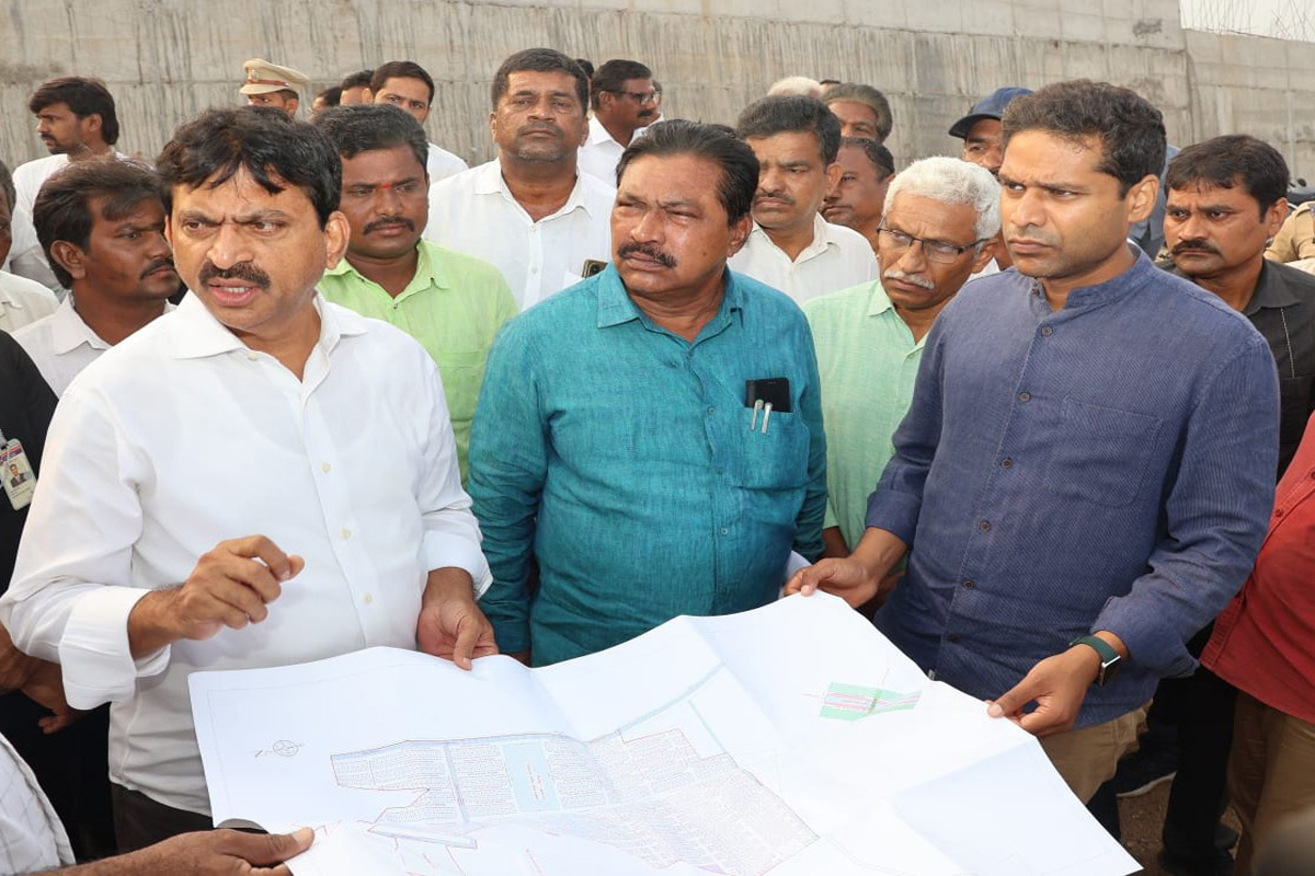 – పనుల ప్రగతిని పరిశీలిస్తున్న మంత్రులు పొంగులేటి, తుమ్మల.