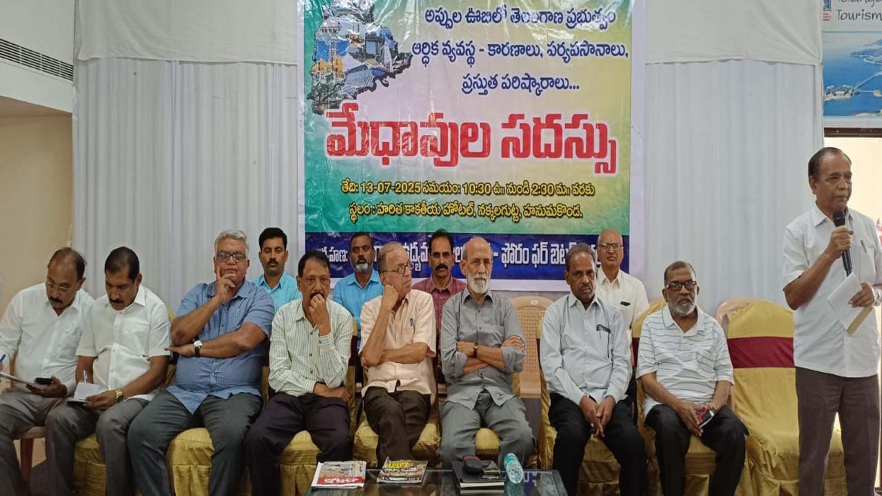 సుబేదారి, ప్రజాతంత్ర, జూలై 13: బీఆర్ఎస్ పాలనలో విద్య, వైద్య రంగాలు నిర్లక్ష్యానికి గురయ్యాయని, అభివృద్ధిలో నిర్లక్ష్యంగా వ్యవహరించడం వల్లనే నేడు రాష్ట్రంలో ఆర్థికంగా ఇబ్బందులు ఎదురవుతున్నాయని హైదరాబాద్ కేంద్ర విశ్వవిద్యాలయ పూర్వ ఆచార్యులు హరగోపాల్ అన్నారు. హనుమకొండ హరిత హోటల్లో తెలంగాణ ఉద్యమకారుల వేదిక, ఫోరం ఫర్ బెటర్ వరంగల్ ఆధ్వర్యంలో అప్పుల ఊబిలో తెలంగాణ ఆర్థిక వ్యవస్థ- కారణాలు-పర్యవసానాలు-పరిష్కారాలు అనే అంశంపై మేధావుల సదస్సు నిర్వహించారు. ముఖ్య అతిథిగా హరగోపాల్ మాట్లాడుతూ సమర్థవంతమైన నాయకత్వం ఆర్థిక వ్యవస్థ బలోపేతానికి దోహదపడుతుందని, అయితే గత పాలకులు ఆర్థిక క్రమశిక్షణ లేకుండా పరిపాలన చేపట్టారని విమర్శించారు. సెంట్రల్ వర్సిటీ అర్థశాస్త్ర విభాగం పూర్వ ఆచార్యులు డి.నరసింహారెడ్డి మాట్లాడుతూ ప్రజలు రాజకీయ చైతన్యంతో మంచి పాలనా వ్యవస్థను నెలకొల్పుకోవాల్సిన పరిస్థితులు ముందున్నాయన్నారు. విధాన నిర్ణయాలు ప్రజల చేతిలో ఉండాలన్నారు. ప్రొఫెసర్, రమణమూర్తి, ప్రొఫెసర్ పురుషోత్తం, గెజిటెడ్ అధికారుల సంఘం ఉపాధ్యక్షుడు ఎ.జగన్మోహన్రావు, ప్రొఫెసర్ వెంకటనారాయణ మాట్లాడుతూ ఏ ప్రభుత్వమైనా ఆర్థిక పరిస్థితులను గమనిస్తూ అభివృద్ధి, సంక్షేమ కార్యక్రమాలను ముందుకు తీసుకెళ్లాలని సూచించారు. సమావేశానికి అధ్యక్షత వహించిన ఫోరం ఫర్ బెటర్ వరంగల్ అధ్యక్షుడు, కాకతీయ విశ్వవిద్యాలయం పాలకమండలి సభ్యుడు పుల్లూరు సుధాకర్ మాట్లాడుతూ గత పాలకులు తెలంగాణను అభివృద్ధి చేస్తారని ప్రజలు ఆశించారని, కానీ ఇందుకు విరుద్ధంగా పాలన కొనసాగించగా ప్రజలు, ప్రజాస్వామ్యవాదులు ఆ విధానాలను ఎప్పటికప్పుడు గమనిస్తూ రాజకీయంగా తగిన బుద్ధి చెప్పారని అన్నారు. సదస్సులో తెలంగాణ ఉద్యమకారులు, ప్రజలు, మేధావులు తదితరులు పాల్గొన్నారు.