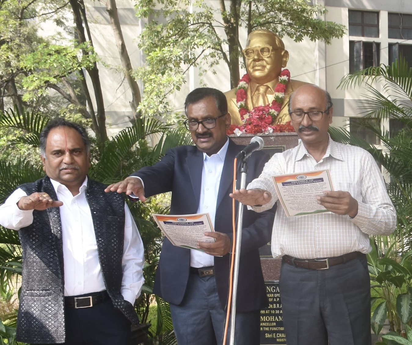 కార్యక్రమానికి విశ్వవిద్యాలయం వైస్-ఛాన్సలర్ ప్రొఫెసర్ ఘంటా చక్రపాణి అధ్యక్షత వహించి, మాట్లాడుతూ ప్రజాస్వామ్య నైతికత ఎలా విఫలం అవుతున్నది అనే విషయం స్థూలంగా ప్రస్తావించారు. ప్రజాస్వామ్య నైతికత విఫలం అయితే రాజ్యాంగం పూర్తి స్థాయి అమలులో విఫలం అవుతదని, రాజ్యాంగ చివరి సభలో సమావేశంలో డా. బి .ఆర్.అంబేడ్కర్ స్పష్టంగా ప్రస్తావించారని వివరించారు.