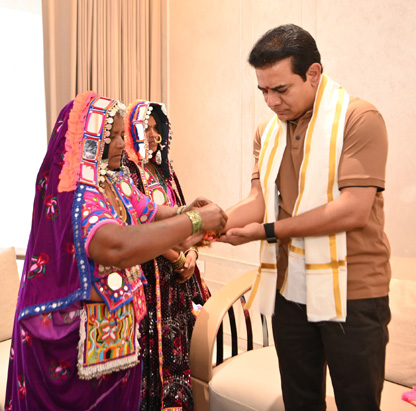 Rakhi: కేటీఆర్కు రాఖీ కట్టిన లగచర్ల గిరిజన మహిళలు