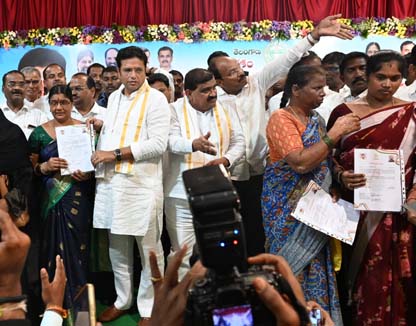 మహేశ్వరం, ప్రజాతంత్ర, ఆగస్టు 5: పేదల అభ్యున్నతే లక్ష్యంగా రాష్ట్రంలో పాలన సాగుతోందని, అందులో భాగంగా అర్హులైన పేదలకు రేషన్ కార్డులు పంపిణీ చేస్తున్నామని, ప్రతి కుటుంబానికి సగటున రూ.1200 విలువైన బియ్యాన్ని ప్రతినెలా ఉచితంగా అందజేస్తున్నామని రంగారెడ్డి జిల్లా ఇన్చార్జి మంత్రి దుద్దిళ్ల శ్రీధర్బాబు చెప్పారు. మహేశ్వరం నియోజకవర్గం బాలాపూర్ మండలం మల్లాపూర్లోని వైఏఆర్ గార్డెన్స్లో నిర్వహించిన నూతన రేషన్ కార్డుల పంపిణీ కార్యక్రమానికి ఆయన ముఖ్యఅతిథిగా విచ్చేశారు. ఈ సందర్భంగా మంత్రి శ్రీధర్బాబు మాట్లాడుతూ జిల్లాలో 12 వేల కొత్త రేషన్ కార్డుల జారీతో సగటున 50 వేల మందికి సన్నరకం బియ్యం అందిస్తున్నామన్నారు. గతంలో తమ ప్రభుత్వం కృష్ణా నీటిని తీసుకొచ్చి హైదరాబాద్ నగరానికి తాగునీటి సమస్య లేకుండా చేసిందని, ప్రస్తుతం ముఖ్యమంత్రి గోదావరి నీటిని తీసుకురావడానికి ప్రణాళికలు రూపొందిస్తున్నారని చెప్పారు. ఈ ప్రాంతానికి కొత్త పరిశ్రమలను తీసుకొస్తున్నామని, యువతకు ఉద్యోగావకాశాలు కల్పిస్తున్నామని అన్నారు. రాష్ట్రంలో ఇప్పటివరకు 65 వేల మందికి ప్రభుత్వ ఉద్యోగాలు కల్పించిన ఘనత తమ ప్రభుత్వానిదేనన్నారు. ప్రభుత్వ చీఫ్ విప్ పట్నం మహేందర్ రెడ్డి మాట్లాడుతూ పేదలకు రేషన్ కార్డులు అందించడం నిరంతర ప్రక్రియ అని, ఇంకా అర్హులైన వారు ఉంటే వారిని కూడా త్వరలో గుర్తించి కార్డులు ఇస్తామని, వడ్డీ లేని రుణాల పథకంతో మహిళలకు కోట్ల రూపాయలు కేటాయించి, వారికి వ్యాపార నైపుణ్యాలలో శిక్షణ అందించి ఇందిర మహిళా శక్తి ద్వారా అనేక కార్యక్రమాలు చేస్తున్నామని వివరించారు. అనంతరం నియోజకవర్గంలోని మహేశ్వరం, బాలాపూర్ మండలాల వారికి మంత్రి రేషన్ కార్డులు పంపిణీ చేసి లబ్ధిదారులతో సహపంక్తి భోజనం చేశారు. కార్యక్రమంలో జిల్లా అదనపు కలెక్టర్ చంద్రారెడ్డి, స్థానిక ఎమ్మెల్యే సబితా ఇంద్రారెడ్డి, టీయూఎఫ్ఐడీసీ చైర్మన్ చల్లా నరసింహారెడ్డి, మార్కెట్ కమిటీ చైర్మన్ యాదయ్య, కందుకూరు ఆర్డీవో రాజేశ్వర్ రెడ్డి, మాజీ ఎమ్మెల్యే కిచ్చన్నగారి లక్ష్మారెడ్డి తదితరులు పాల్గొన్నారు.