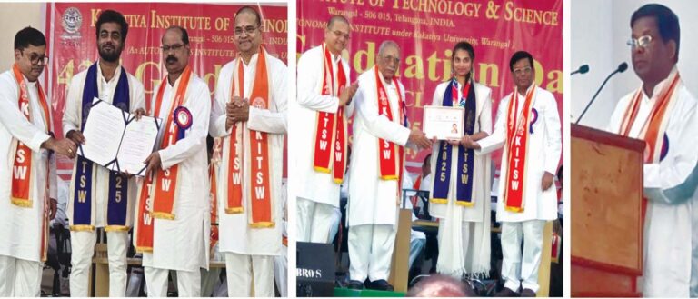 – ‘నిట్’ డైరెక్టర్ ప్రొఫెసర్ బిద్యాధర్ సుబుధి – కిట్స్ వరంగల్ 42వ వార్షిక స్నాతకోత్సవం వరంగల్, ప్రజాతంత్ర, నవంబర్ 22: ఆశయంలో ధైర్యంగా ప్రవర్తనలో వినయంగా మీ సామర్థ్యాలపై నమ్మకంగా ఉండండి.. కానీ నేర్చుకోవడం ఎప్పుడూ ఆపవద్దు అని వరంగల్ ‘నిట్’ డైరెక్టర్ ప్రొఫెసర్ బిద్యాధర్ సుబుధి విద్యార్థులకు ఉద్బోధించారు. కిట్స్ వరంగల్ క్యాంపస్లో…