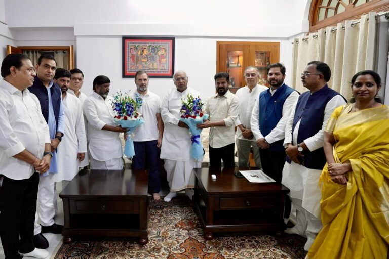 – రాష్ట్రపతి అనుమతి కోసం ఎదురు చూస్తున్న బీరిజర్వేషన్ల బిల్లు – రాహుల్ నాయకత్వంలో సామాజిక న్యాయం కోసం పోరాటం – ఏఐసీసీ అధ్యక్షుడు మల్లికార్జున ఖర్గే న్యూదిల్లీ, జూలై24: తెలంగాణలో శాస్త్రీయ్రంగా నిర్వహించిన సామాజిక, ఆర్థిక సర్వే దేశానికి ఆదర్శం కావాలని ఏఐసీసీ అధ్యక్షుడు మల్లికార్జున ఖర్గే ఉద్ఘాటించారు. తెలంగాణ సర్వే ఆధారంగా స్థానిక…