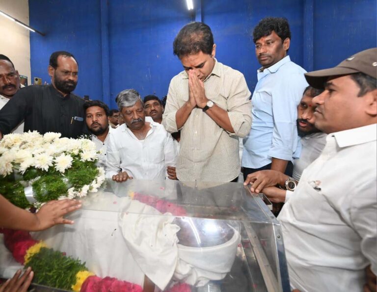 – అందెశ్రీ మృతికి కేటీఆర్ సంతాపం – ఆయన పార్థివ దేహానికి నివాళులు హైదరాబాద్, ప్రజాతంత్ర, నవంబర్ 10: అందెశ్రీ మరణం తెలంగాణ సమాజానికి, సాహిత్యానికి తీరని లోటు అని మాజీ మంత్రి, బీఆర్ఎస్ పార్టీ వర్కింగ్ ప్రెసిడెంట్ కేటీఆర్ అన్నారు. ఆయన ఆకస్మిక మృతిపట్ల దిగ్భ్రాంతి వ్యక్తం చేశారు. ఆయన పవిత్ర ఆత్మకు శాంతి…