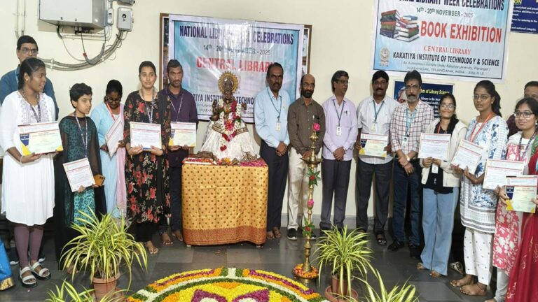 – కేయూ గ్రంథాలయ శాస్త్ర అధ్యాపకుడు కృష్ణమాచార్య – కిట్స్ వరంగల్ కేంద్ర గ్రంధాలయంలో పుస్తక ప్రదర్శన వరంగల్, ప్రజాతంత్ర, నవంబర్ 19: మనిషి వ్యక్తిత్వ వికాసానికి, ఆలోచనలకు, భవిష్యత్ దిశా నిర్దేశానికి పుస్తకాలు బాటలు వేస్తాయని కాకతీయ యూనివర్సిటీ గ్రంథాలయ శాస్త్ర అధ్యాపకుడు వేదాంతం కృష్ణమాచార్య తెలిపారు. చదవాలనే అలవాటు మరింతగా అభివృద్ధి చేసుకోవటం…
