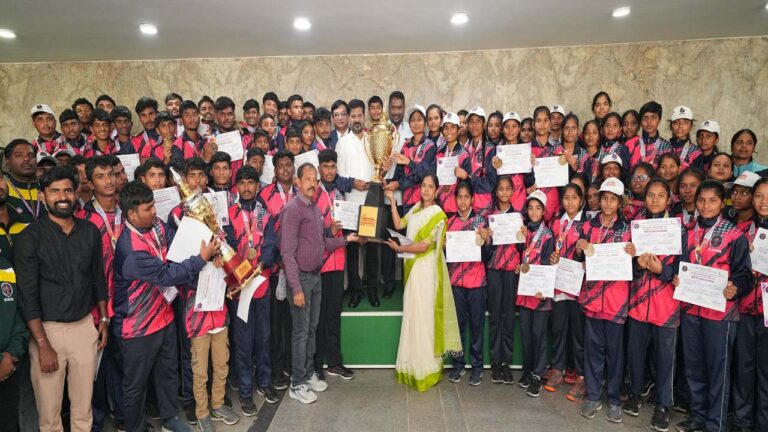హైదరాబాద్, ప్రజాతంత్ర, నవంబర్ 21: 4వ ఈఎంఆర్ఎస్ నేషనల్ స్పోర్ట్స్ మీట్-2025లో రికార్డ్-బ్రేకింగ్ మెడల్స్ సాధించిన తెలంగాణ అథ్లెటిక్స్, ఆర్చరీ, స్విమ్మింగ్, జిమ్నాస్టిక్స్, బాక్సింగ్, జూడో, రెజ్లింగ్, వెయిట్ లిఫ్టింగ్, టైక్వాండో, యోగా, షూటింగ్, చెస్ ఇతర ఈవెంట్లకు చెందిన విద్యార్థులను ముఖ్యమంత్రి రేవంత్రెడ్డి అభినందించారు. అన్ని రాష్ట్రాలకంటే తెలంగాణ అత్యధికంగా 230 పతకాలను సాధించిన…