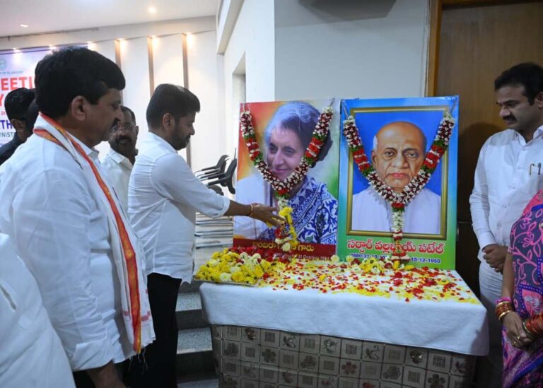 హనుమకొండ, ప్రజాతంత్ర, అక్టోబర్‌ 31 : ఉక్కు మనిషి, ప్రథమ ఉప ప్రధాని సర్దార్‌ వల్లభాయ్‌ పటేల్‌ జయంతి, దివంగత ప్రధాని ఇందిరా గాంధీ వర్ధంతి సందర్భంగా హన్మకొండ జిల్లా కలెక్టరేట్‌లో శుక్రవారం ఆ మహనీయుల చిత్రపటాల వద్ద ముఖ్యమంత్రి ఎ.రేవంత్‌ రెడ్డి పుష్పాంజలి ఘటించారు. ఈ కార్యక్రమంలో మంత్రులు పొంగులేటి శ్రీనివాస్‌ రెడ్డి, పొన్నం…
