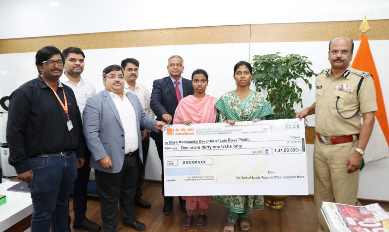 – రోడ్డు ప్రమాదంలో కానిస్టేబుల్ దుర్మరణం – రూ.1.31కోట్ల చెక్కు అందజేసిన డీజీపీ హైదరాబాద్, ప్రజాతంత్ర, జనవరి 8 : రోడ్డు ప్రమాదంలో ప్రాణాలు కోల్పోయిన కానిస్టేబుల్ కుటుంబానికి బ్యాంక్ ఆఫ్ బరోడా ద్వారా అందాల్సిన బీమా మొత్తాన్ని డీజీపీ బి శివధర్ రెడ్డి చేతుల మీదుగా ఆయన కార్యాలయంలో గురువారం నాడు అందజేశారు. అంబర్పేట…