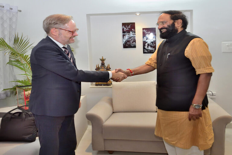 – మంత్రి ఉత్తమ్తో డెన్మార్క్ రాయబారి రాస్మస్ క్రిస్టేన్సన్ భేటీ – రెండు దేశాల మధ్య వాణిజ్య, పారిశ్రామిక సంబంధాలపై చర్చ హైదరాబాద్, ప్రజాతంత్ర, సెప్టెంబర్ 5: వాణిజ్య, పారిశ్రామిక రంగంలో రెండు దేశాల మధ్య బంధం మరింత బలపడాలని నీటిపారుదల, పౌరసరఫరాల శాఖ మంత్రి కెప్టెన్ ఉత్తమ్ కుమార్రెడ్డి ఆకాంక్షించారు. డెన్మార్క్ రాయబారి రాస్మస్…