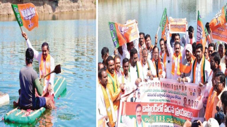 – వరంగల్ బస్టాండు స్థలంలో ఉచిత పడవ ప్రయాణం పేర బీజేపీ నిరసన – సీఎం, మంత్రి, మాజీ సీఎం కేసీఆర్లకు ప్రయాణం ఉచితం – ప్రారంభించిన జిల్లా అధ్యక్షుడు రవికుమార్ వరంగల్, ప్రజాతంత్ర, నవంబర్ 13: వరంగల్ బస్టాండ్ పనుల్లో నిర్లక్ష్యం, ప్రమాద స్థాయిలో గుంతలు తీయడంతో నీళ్లు నిలిచి స్విమ్మింగ్ ఫుల్లా మారిందని,…
