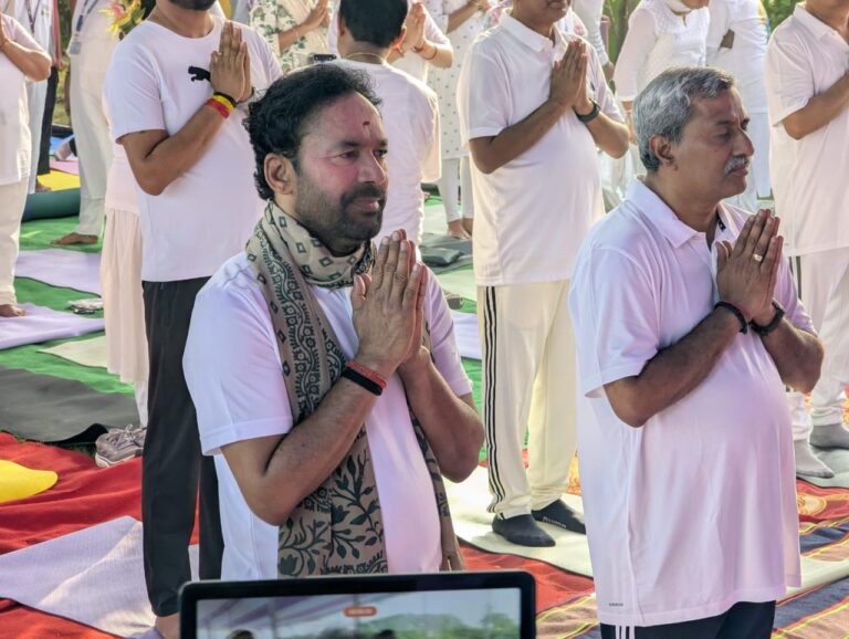 బెంగాల్లోని సింధూర్ పార్కులో యోగా డేలో పాల్గొన్న కిషన్రెడ్డి కోల్కతా: శారీరక, మానసిక, పర్యావరణ శ్రేయస్సును ఆకాంక్షిస్తూ ‘ఒకే భూమి, ఒకే ఆరోగ్యం’ కోసం యోగా నేపథ్యంతో శనివారం ప్రపంచవ్యాప్తంగా జరిగిన యోగా వేడుకలలో భాగంగా పశ్చిమ బెంగాల్లోని ఈస్టర్న్ కోల్ ఫీల్డ్స్ లిమిటెడ్లోని రaంజ్రా ఏరియాలో ఉన్న సింధూర్ పార్కులో అంతర్జాతీయ యోగా దినోత్సవ…