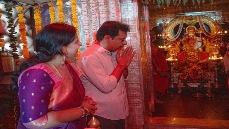 జూబిలీ హిల్స్, ప్రజాతంత్ర,సెప్టెంబర్ 30: జూబ్లీహిల్స్ ప్రసిద్ధ పెద్దమ్మతల్లి ఆలయంలో దేవీ శరన్నవరాత్రి ఉత్సవాలు ఘనంగా జరుగుతున్నాయి. ఈ సందర్భంగా బీఆర్ఎస్ వర్కింగ్ ప్రెసిడెంట్ కె. తారక రామారావు (కేటీఆర్) దంపతులు మంగళవారం ఆలయాన్ని సందర్శించారు. మాజీ ఎమ్మెల్యే విష్ణువర్ధన్ రెడ్డి ఆహ్వానం మేరకు ఆలయానికి విచ్చేసిన కేటీఆర్ దంపతులు, పెద్దమ్మతల్లికి ప్రత్యేక పూజలు నిర్వహించి అమ్మవారిని…