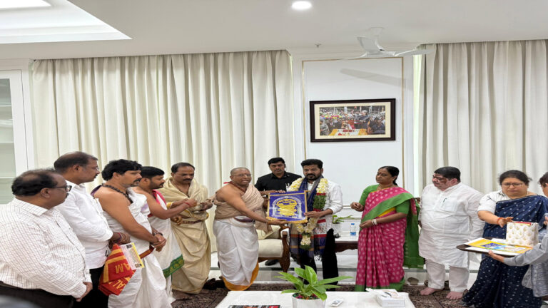 హైదరాబాద్, ప్రజాతంత్ర, జూన్ 23: ఉజ్జయినీ మహంకాళి బోనాల ఉత్సవాల కమిటీ సోమవారం ముఖ్యమంత్రి రేవంత్ రెడ్డిని కలిసింది. ఈ సందర్భంగా బోనాల ఉత్సవాలకు సంబంధించి ఆయనకు మంత్రులు కొండా సురేఖ, పొన్నం ప్రభాకర్, దేవాదాయ శాఖ ఉన్నతాధికారులతో కూడిన కమిటీ ఆహ్వాన పత్రిక అందించింది. ఆలయ అర్చకులు ముఖ్యమంత్రి రేవంత్ రెడ్డికి అమ్మవారి ఆశీర్వచనాలు…