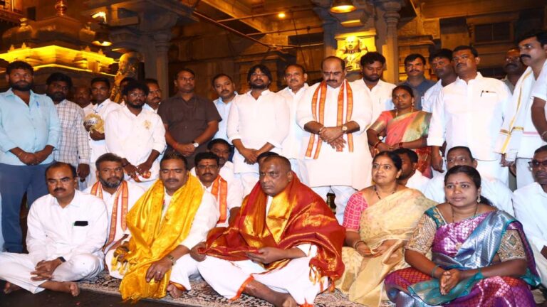 యాదగిరిగుట్ట, ప్రజాతంత్ర, జులై 2: యాదగిరిగుట్టలోని స్వయంభూ శ్రీ లక్ష్మీనరసింహస్వామి వారిని రాష్ట్ర ఎస్సీ, ఎస్టీ, మైనార్టీ సంక్షేమ శాఖ, ఉమ్మడి నల్లగొండ జిల్లా ఇన్చార్జి మంత్రి అడ్లూరి లక్ష్మణ్ కుమార్ బుధవారం దర్శించుకున్నారు. ఈ సందర్భంగా ఆయనకు ఆలయ అర్చకులు పూర్ణకుంభంతో స్వాగతం పలికారు. అనంతరంఆలయ మండపంలో వేద ఆశీర్వచనం చేశారు. ఆలయ ఈవో…