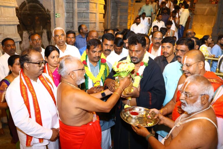 – పూర్ణకుంభంతో ఘన స్వాగతం యాదగిరిగుట్ట, ప్రజాతంత్ర, డిసెంబర్ 23: ప్రముఖ పుణ్యక్షేత్రమైన యాదగిరిగుట్టపై వెలసిన శ్రీ లక్ష్మీనరసింహస్వామిని ఎస్సీల, గిరిజన సంక్షేమ శాఖ మంత్రి ఆడ్లూరి లక్ష్మణ్ మంగళవారం దర్శించుకున్నారు. పూర్ణకుంభంతో ఆలయ అర్చకులు ఆయనకు స్వాగతం పలికారు. అనంతరం గర్భాలయంలో స్వయంభు శ్రీ లక్ష్మీనరసింహస్వామి వారిని మంత్రి దర్శించుకుని ప్రత్యేక పూజలు నిర్వహించారు.…