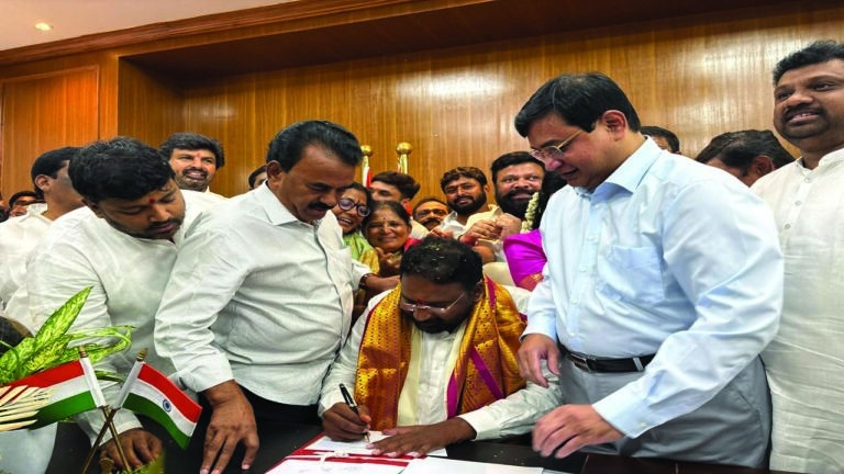 హైదరాబాద్, ప్రజాతంత్ర, జూన్ 16: పశుసంవర్ధక, పాడి పరిశ్రమాభివృద్ధి, క్రీడలు, యువజన సర్వీసుల శాఖ మంత్రిగా వాకిటి శ్రీహరి పదవీ బాధ్యతలు స్వీకరించారు. సోమవారం ఉదయం డాక్టర్ అంబేద్కర్ సచివాలయానికి చేరుకున్న మంత్రి శ్రీహరికి మంత్రోచ్ఛారణలతో వేద పండితులు స్వాగతం పలికారు. అనంతరం తన చాంబర్లో వాకిటి ప్రత్యేక పూజలు చేసి బాధ్యతలు చేపట్టారు. ఈ…