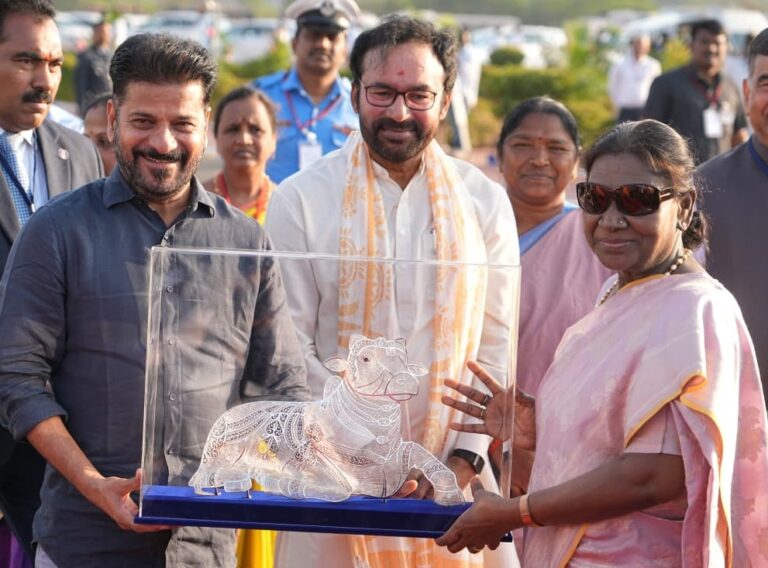 హైదరాబాద్, ప్రజాతంత్ర, డిసెంబర్ 22ః భారత రాష్ట్రపతి ద్రౌపది ముర్ము హైదరాబాద్లో శీతాకాల విడిది ముగిసింది. సోమవారం సాయంత్రం దిల్లీ తిరిగి వెళ్తున్న ఆమెకు హకీంపేట్ ఎయిర్ ఫోర్స్ స్టేషన్ లో గవర్నర్ జిష్ణుదేవ్ వర్మతో కలిసి ముఖ్యమంత్రి ఎ.రేవంత్రెడ్డి, కేంద్ర బొగ్గు గనుల శాఖ మంత్రి జి.కిషన్రెడ్డిలు వీడ్కోలు పలికారు. వీరితోపాటు మంత్రి సీతక్క,…