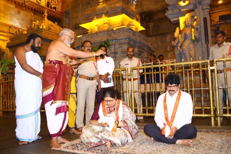 – ఆలయ అభివృద్ధిపై సమీక్ష యాదగిరిగుట్ట, ప్రజాతంత్ర, ఆగస్టు 29 : రెవెన్యూ, ఎండోమెంట్స్ డిపార్టుమెంట్ ప్రిన్సిపల్ సెక్రటరీ శైలజ రామయ్యర్ ప్రముఖ పుణ్యక్షేత్రం యాదాద్రి శ్రీ లక్ష్మీనరసింహస్వామి వారిని దర్శించుకున్నారు. ఆమెకు ఆలయ ఈవో ఎస్.వెంకటరావు, కమిషనరు ఆధ్వర్యంలో ఆలయ అర్చకులు పూర్ణకుంభంతో స్వాగతం పలికారు. స్వామివారి దర్శించుకుని ప్రత్యేక పూజలు నిర్వహించిన అనంతరం…