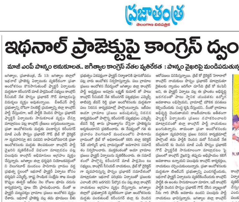 – పొన్నం వ్యాఖ్యలపై దళితవర్గాల్లో ఆగ్రహం – ఇద్దరి మధ్య చిచ్చుపెట్టిన ఇథనాల్ ప్రాజెక్టు – రెండేళ్ల క్రితమే విభేదాలు – పొన్నం క్షమాపణలు పై పూతేనా? – రహస్య వైరం కొనసాగితే కాంగ్రెస్కు నష్టం జగిత్యాల, ప్రజాతంత్ర, అక్టోబర్ 8: రాష్ట్ర రాజకీయ వేదికపై మరోసారి మాటల తుపాకీ పేలింది. బీసీ సంక్షేమ శాఖ…