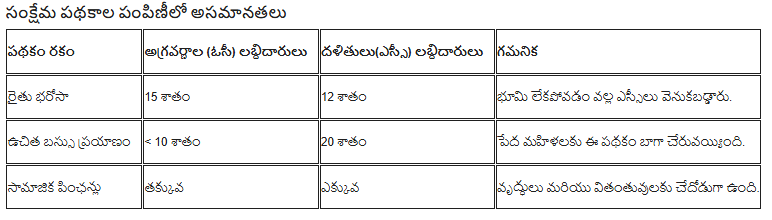 - సమానంగా పంపిణీ కాని సంక్షేమ ఫలాలు