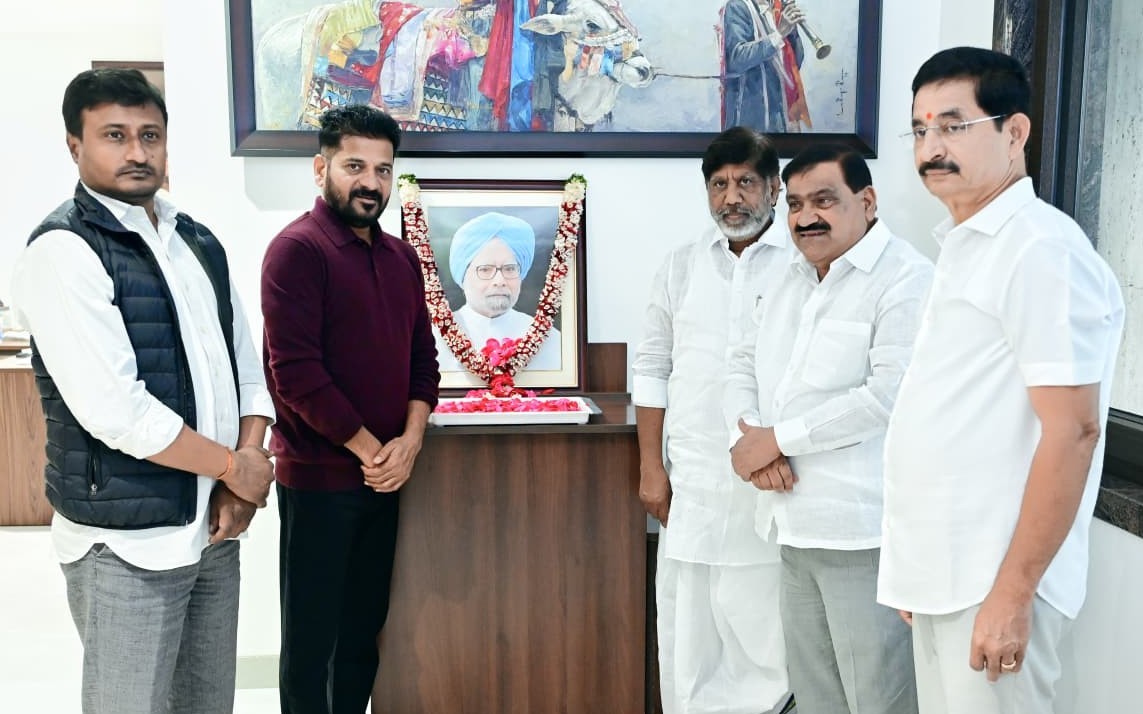 హైదరాబాద్,ప్రజాతంత్ర,డిసెంబర్ 26: మాజీ ప్రధాని డాక్టర్ మన్మోహన్ సింగ్ మొదటి వర్ధంతి సందర్భంగా ముఖ్యమంత్రి రేవంత్ రెడ్డి, డిప్యూటీ సీఎం భట్టి విక్రమార్కలు ఘనంగా నివాళి అర్పించారు. మన్మోహన్ దేశానికి చేసిన సేవలను గుర్తు చేసుకున్నారు. జూబ్లీ హిల్స్ నివాసంలో ఆ మహనీయుడి చిత్రపటానికి సిఎం తదితరులు నివాళులు అర్పించారు. ఈ కార్యక్రమంలో సీఎం సలహాదారు వేం నరేందర్ రెడ్డి, శాసనమండలి చీఫ్ విప్ పట్నం మహేందర్ రెడ్డి, నల్గొండ ఎంపీ రఘువీర్ రెడ్డిలు ఉన్నారు.