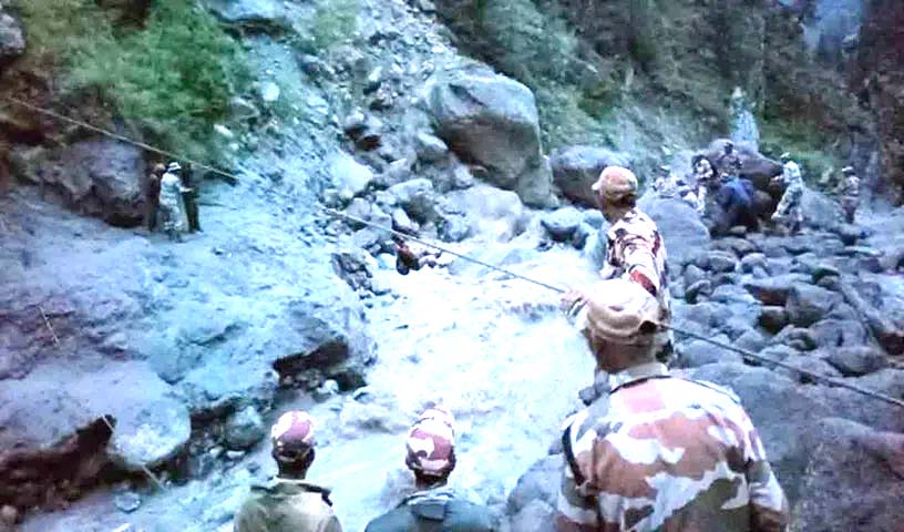 దిల్లీి, హిమాచల్ ప్రదేశ్, ఉత్తరాఖండ్ రాష్ట్రాలను ఆకస్మిక వరదలు చుట్టుముడుతున్నాయి. ఉత్తర కాశీ జిల్లాలో జలవిలయం బీభత్సం సృష్టించిన విషయం తెలిసిందే. తాజాగా హిమాచల్ ప్రదేశ్లో మెరుపు వరదలు బీభత్సం సృష్టించాయి. హిమాచల్ రాష్ట్ర వ్యాప్తంగా గతకొన్ని రోజులుగా భారీ వర్షాలు కురుస్తున్న విషయం తెలిసిందే. టాంగ్లింగ్ ప్రాంతంలో కురిసిన వర్షం కారణంగా కిన్నెర్ కైలాష్ యాత్ర మార్గంలో ఆకస్మిక వరదలు సంభవించాయి. ఈ వరదల్లో వందలాదిమంది యాత్రికులు పర్వత మార్గంలో చిక్కుకుపోయారు. ఇండో-టిబెటన్ బోర్డర్ పోలీసులు వెంటనే రంగంలోకి దిగి సాహసోపేతమైన ఆపరేషన్ చేపట్టారు. రోప్వే సాయంతో దాదాపు 413 మంది యాత్రికులను రక్షించారు. ఇందుకు సంబంధించిన వీడియో ప్రస్తుతం వైరల్ అవుతోంది. కాగా, రెండు రోజుల నుంచి హిమాచల్లో మోస్తరు నుంచి భారీ వర్షాలు కురుస్తున్నాయి. ఈ వర్షాలకు చాలాచోట్ల కొండచరియలు విరిగిపడుతున్నాయి. ఈ కారణంగా దాదాపు 450 రోడ్లను అధికారులు మూసివేశారు. ముఖ్యంగా మండి జిల్లా అత్యంత ప్రభావితమైంది. ఇక్కడ దాదాపు 295 రోడ్లు మూసుకుపోయాయి. ఇక సిమ్లాలోని చక్కీమోర్ వద్ద కొండచరియలు విరిగిపడటంతో కీలకమైన చండీగఢ్-సిమ్లా జాతీయ రహదారిని అధికారులు మూసివేయాల్సి వచ్చింది. రాష్ట్రంలో రానున్న రోజుల్లో భారీ వర్షాలు కురుస్తాయని వాతావరణ శాఖ హెచ్చరించింది. ఉనా, కాంగ్రా, మండి, సిర్మౌర్ జిల్లాల్లో అతి భారీ వర్షాలు కురుస్తాయని తెలిపింది. ఈ మేరకు ఆ నాలుగు జిల్లాలకు ఆరెంజ్ అలర్ట్ జారీ చేసింది.