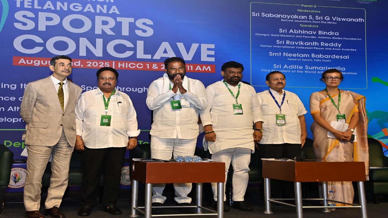 -హెచ్ఐసీసీలో స్పోర్ట్సు కాంక్లేవ్ను ప్రారంభించిన మంత్రి శ్రీహరి